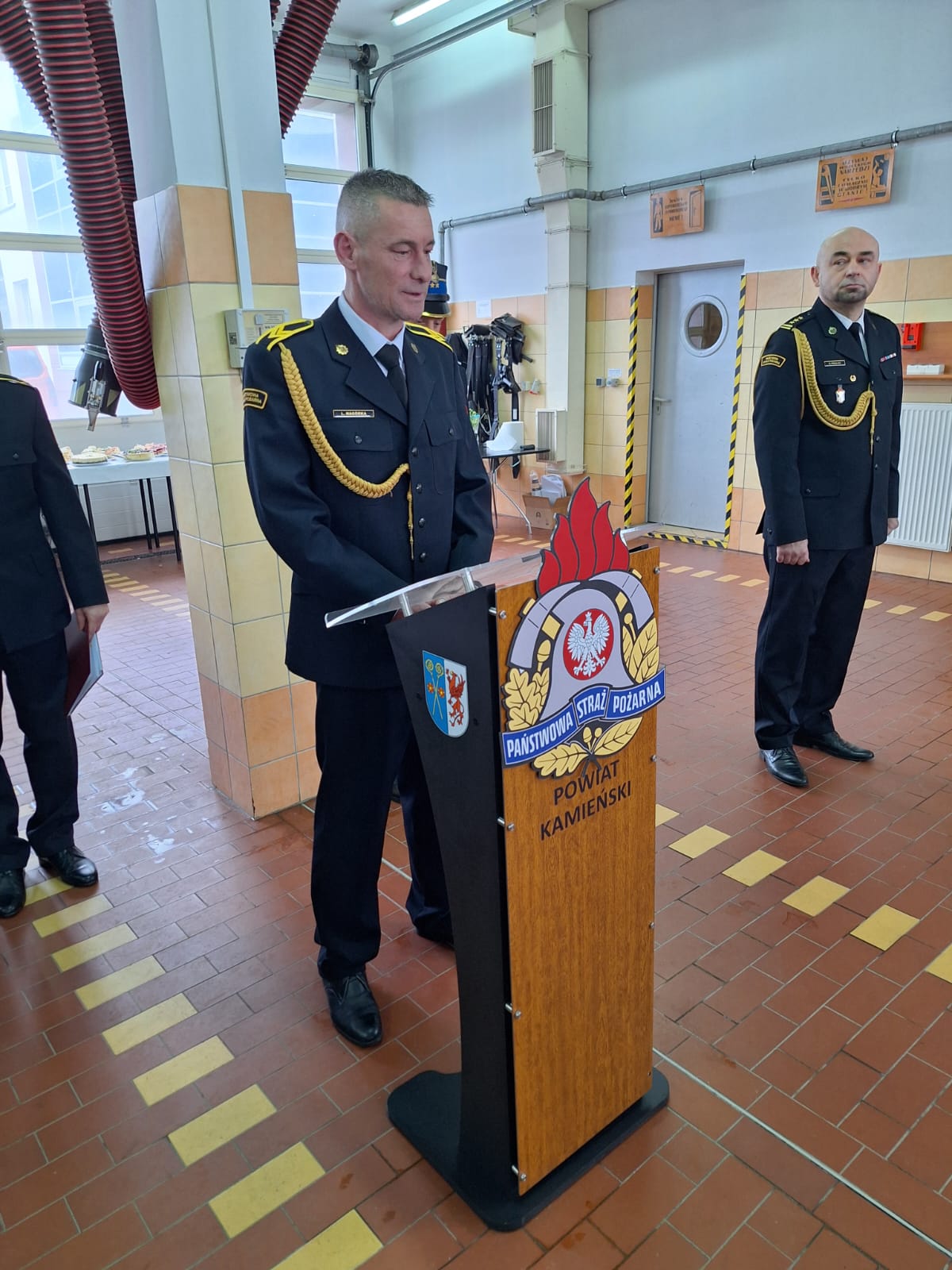 W dniu 26.02.2025 r. w KP PSP w Kamieniu Pomorskim odbyła się uroczysta zbiórka. W pierwszej części miało miejsce zdanie i przyjęcie stanowiska dowódcy Jednostki Ratowniczo - Gaśniczej w Kamieniu Pomorskim. Bryg. Krzysztof Przydryga złożył Komendantowi Powiatowemu Państwowej Straży Pożarnej st. bryg. Romanowi Pikulskiemu meldunek o zdaniu obowiązków dowódcy JRG.