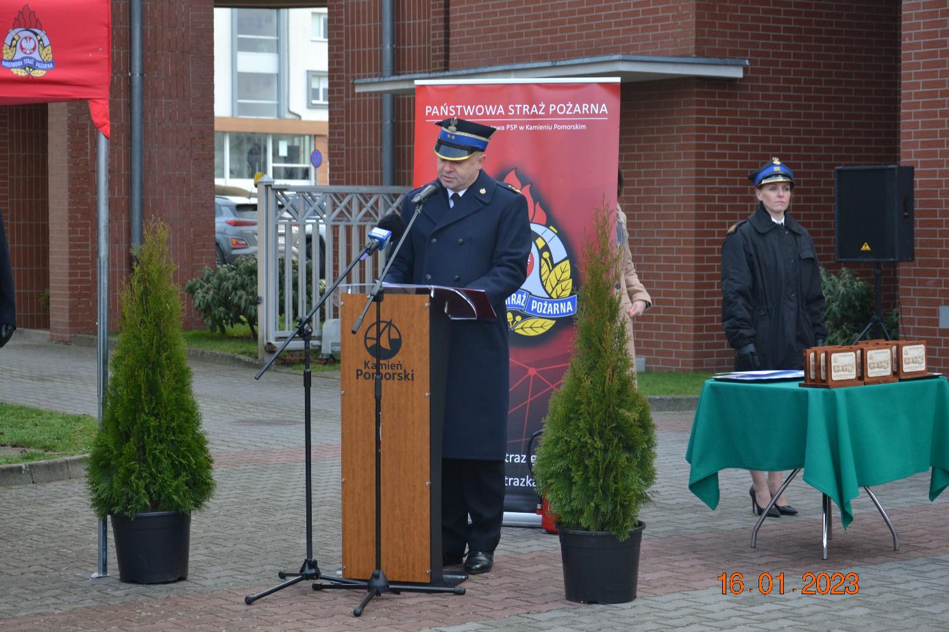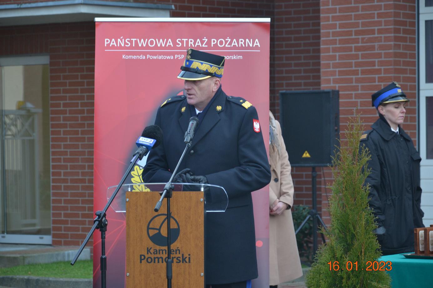 Na wstępie Komendant Powiatowy PSP w Kamieniu Pomorskim bryg. Roman Pikulski przywitał przybyłych gości w osobach: