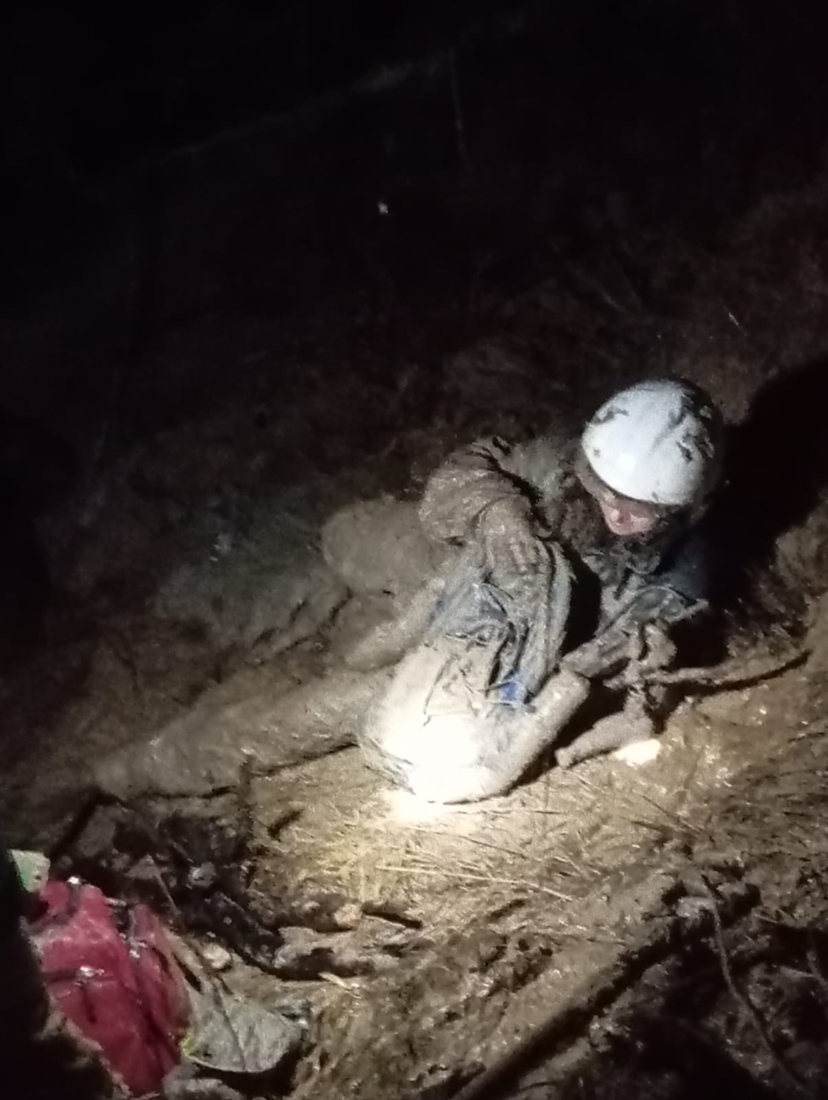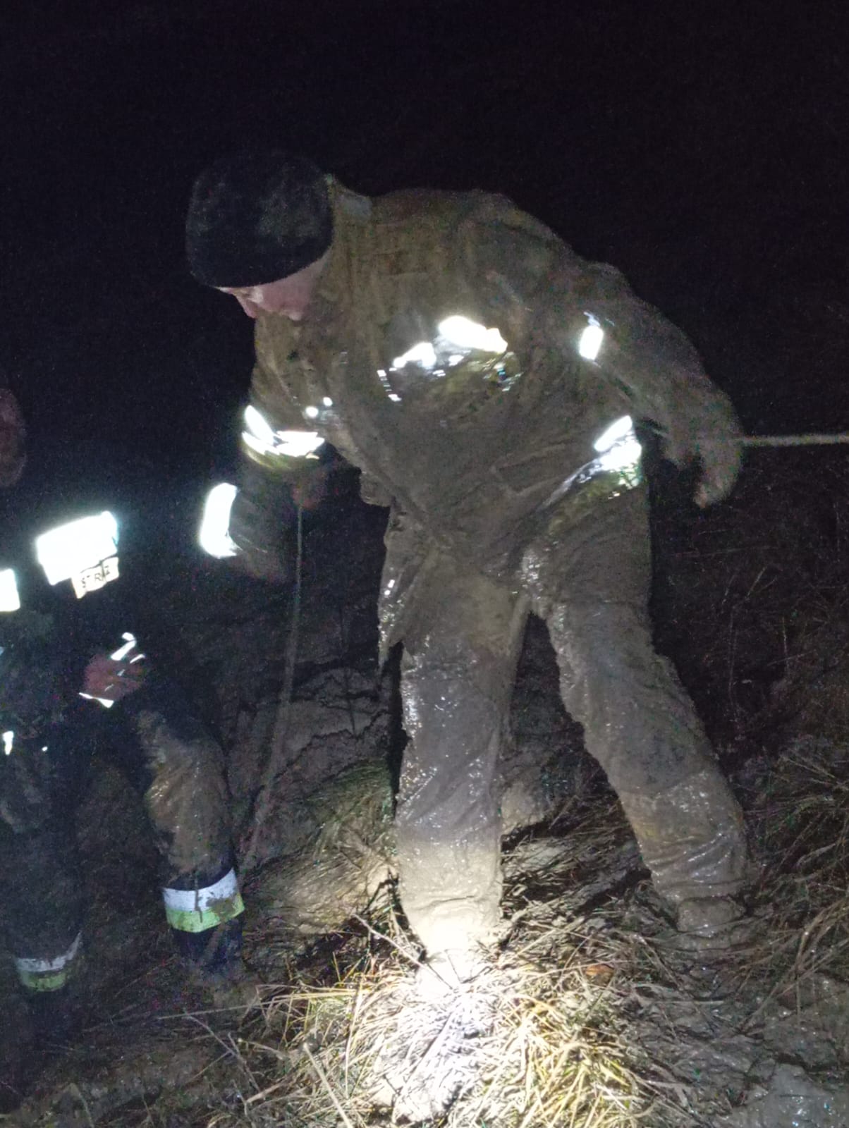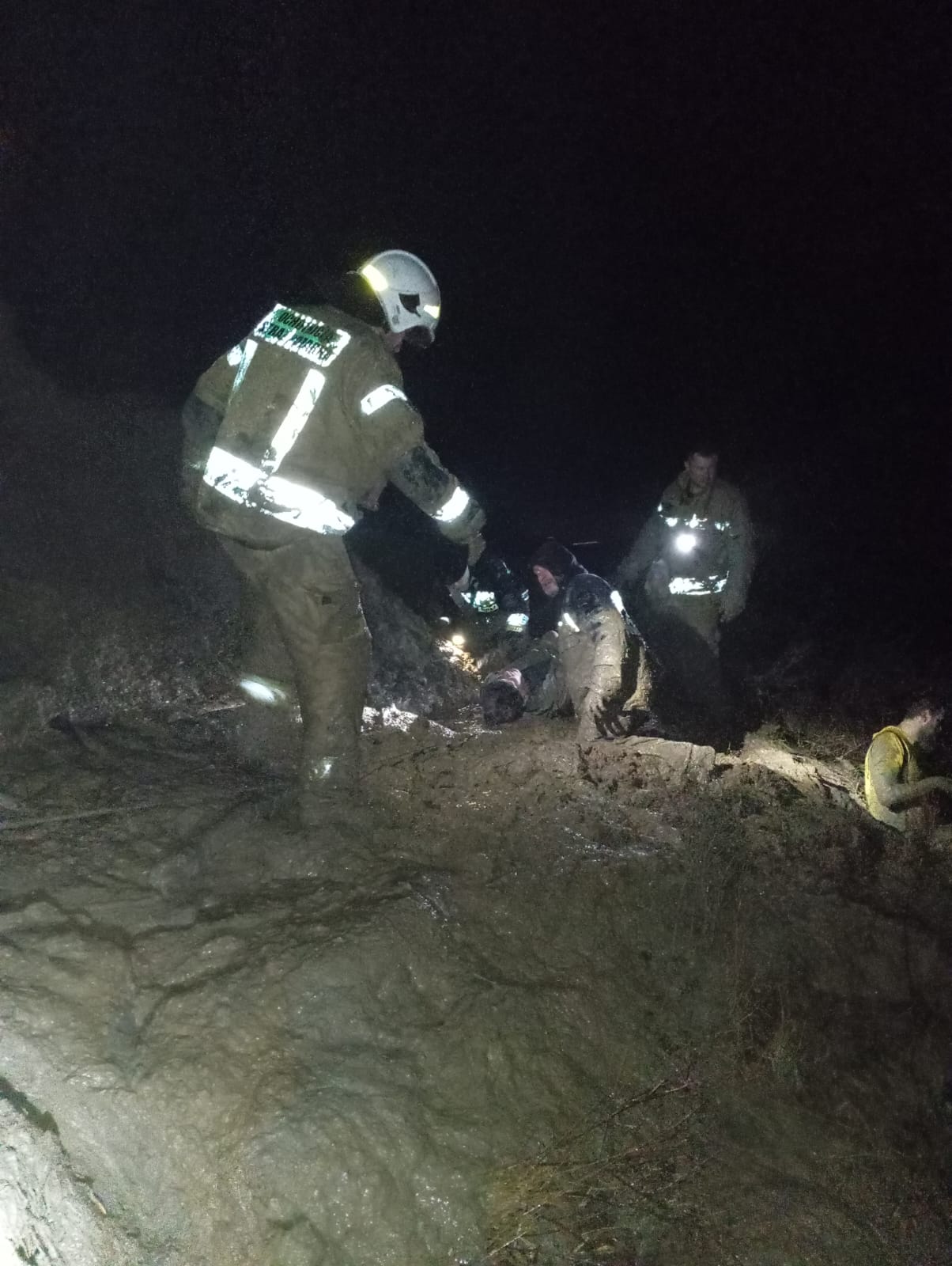 11.02.2024 r po godzinie 18:00 do Stanowiska Kierowania Komendanta Powiatowego PSP w Kamieniu Pomorskim wpłynęła informacja, że na terenie Wolińskiego Parku Narodowego na klifie w miejscowości Grodno w glinie utknął człowiek, który samodzielnie nie może się wydostać. Istnieje duże ryzyko zagrożenia życia. Dokładne miejsce pobytu poszkodowanego nie jest znane, trwa namierzanie GPS. Dyżurny SKKP do działań natychmiast zadysponował zastępy z Posterunku PSP Międzyzdroje(GBARt,SLRR+ Quad),zastępy z OSP KSRG Międzyzdroje(GBARt+ Quad),zastępy z OSP Międzywodzie (GCBARt+Quad) ,zastęp OSP KSRG Kołczewo (Quad+przyczepa transportowa),zastępy OSP KSRG Lubin (GBARt,SLRR) oraz SLRR Z JRG Kamień Pomorski wraz z oficerem operacyjnym powiatu. Po przybyciu pierwszych zastępów na teren WPN stwierdzono brak możliwości dotarcia do miejsca zdarzenia przy pomocy pojazdów pożarniczych i Quad. Pozostałą część drogi do osoby uwięzionej ratownicy musieli pokonać pieszo w trudnym leśnym terenie. Gdy ratownicy dotarli na miejsce zdarzenia zlokalizowali uwięzionego po pas mężczyznę w gliniastym gruncie na oberwanej części klifu. Mężczyzna był przytomny ale przemoczony i bardzo wyczerpany. Teren akcji zabezpieczono, podjęto próbę uwolnienia poszkodowanego przy pomocy sprzętu burzącego (szpadle i lina ratownicza). Ze względu na trudne warunki terenowe tzn. zapadający się grunt pod ratownikami działania nie przynosiły zamierzonego efektu i wymagały zaangażowania większej ilości SiS. W trakcie działań mężczyźnie udzielono wsparcia psychicznego oraz starano się zabezpieczyć go przed nadmiernym wychłodzeniem przy użyciu folii NRC. Ze względu na trudne warunki terenowe (w danym momencie nie było wiadomo czy do miejsca zdarzenia uda się dojechać quadem z przyczepą do transportu poszkodowanych)podjęto decyzję o zadysponowaniu za pośrednictwem Stanowiska Kierowania Komendanta Wojewódzkiego łodzi ratowniczej SAR w celu ewentualnej ewakuacji poszkodowanego z plaży. Po dotarciu na miejsce zdarzenia kolejnych ratowników udało się wykopać osobę z grząskiej - gliniastej ziemi. Wychłodzony mężczyzna został ułożony na desce, zapewniono mu komfort cieplny. Na miejsce dotarł quad z przyczepą ewakuacyjną, na której został umieszczony poszkodowany i odwieziony w kierunku utwardzonej drogi, gdzie czekał już Zespół Ratownictwa Medycznego. Poszkodowany został przekazany ratownikom medycznym, po badaniu okazało się, że zostanie zabrany do szpitala na obserwację.