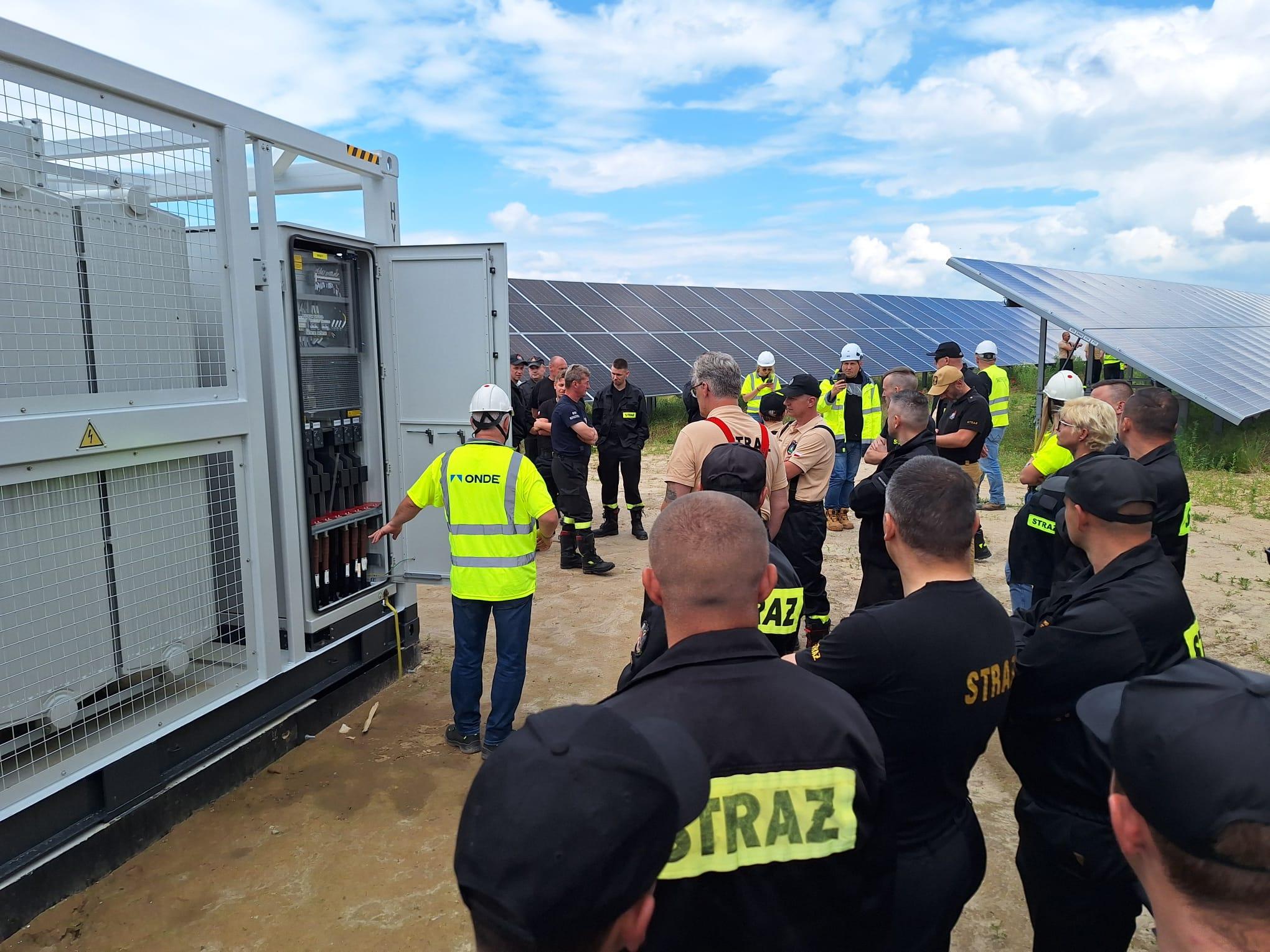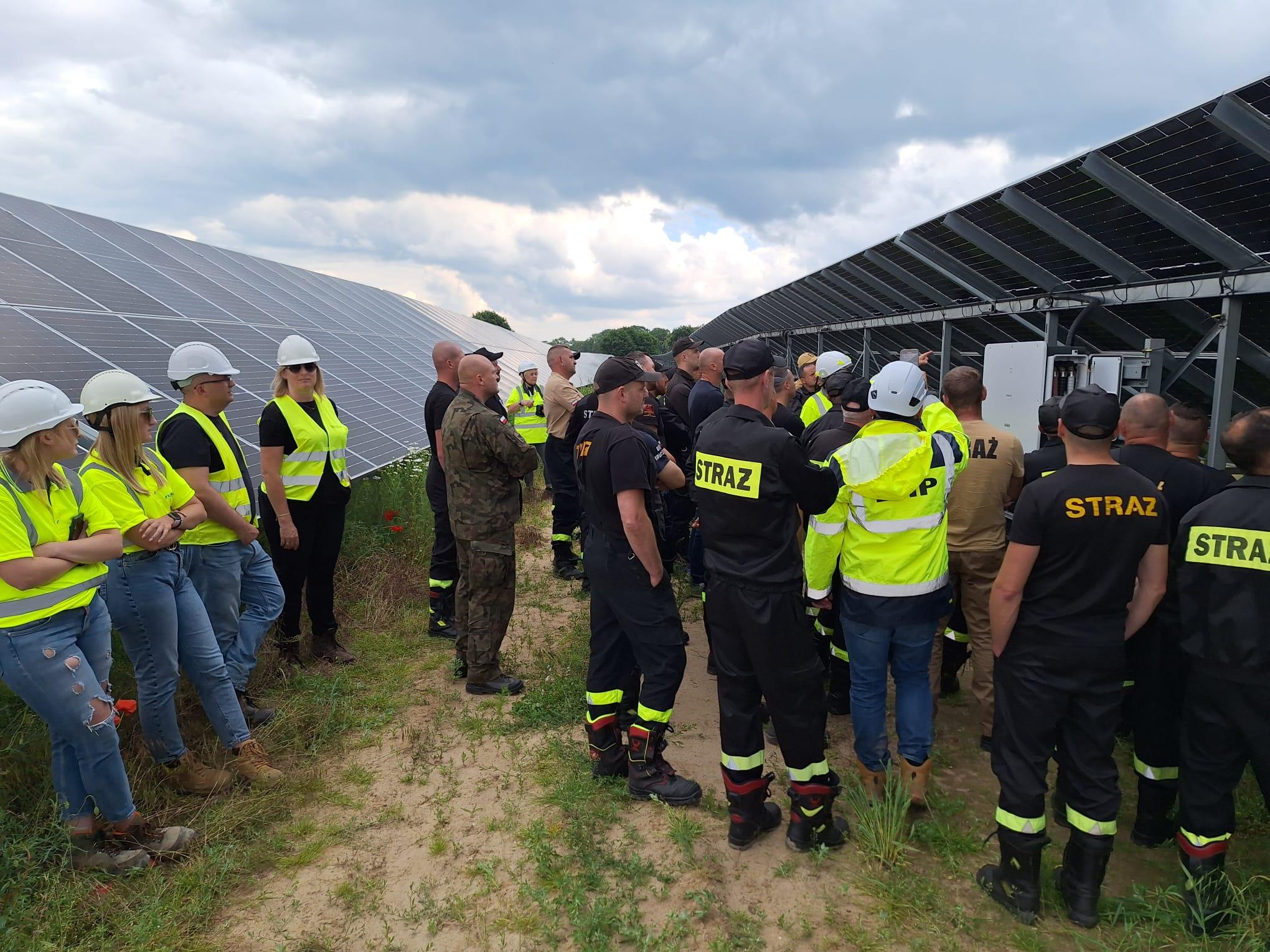 Nowo powstała farma liczy powierzchnie 114 hektarów i osiąga moc 70 MW. Szkolenie przeprowadziła firma ONDE z Torunia budująca farmę wraz z firmą zarządzająca farmą Qair Polska S.A. z Wrocławia. Szkolenie było podzielone na dwie części tj. część teoretyczną poprzedzoną obszerną prezentacją dotyczącą tej właściwej farmy oraz z wykorzystaniem wszelkich innych wiadomości o tematyce fotowoltaiki montowanej na halach zakładów oraz na użytek gospodarstw domowych. Przedstawiono powody awarii instalacji, skutki oraz jak zapobiegać zagrożeniom. Po części teoretycznej przystąpiono do części praktycznej, która zakładała zapoznanie się z technologią farmy, sposobami skutecznej i bezpiecznej akcji ratowniczej z zasadami rozłączania poszczególnych modułów i stacji transformatorowych ich sposoby i metody gaszenia. Zapoznano się z drogami dojazdowymi do farmy oraz siecią dróg wewnętrznych mające na celu jak najszybsze dotarcie w poszczególny sektor farmy. Na podsumowanie warsztatów odbył się pokaz techniki gaszenia płonących paneli fotowoltaicznych.
