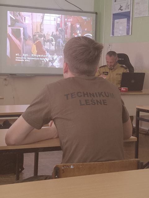 w dniu 11.05.2023 roku na zaproszenie Zespołu Szkół Ponadgimnazjalnych w Benicach odbyła się prelekcja poświęcona akcji "EDUKACJA DLA BEZPIECZEŃSTWA" Prelekcja była prowadzona przez Państwową Straż Pożarną z Kamienia Pomorskiego - pion kontrolno-rozpoznawczy. W zajęciach uczestniczyło 60 osób ,głównie uczniowie klas ZSP oraz kadra nauczycielska. Poruszano tematykę pożarów zewnętrznych i wewnętrznych budynków, omówione zostały zasady bezpiecznej ewakuacji z zagrożonych budynków oraz sposób i elementy prawidłowego alarmowania służb ratowniczych.