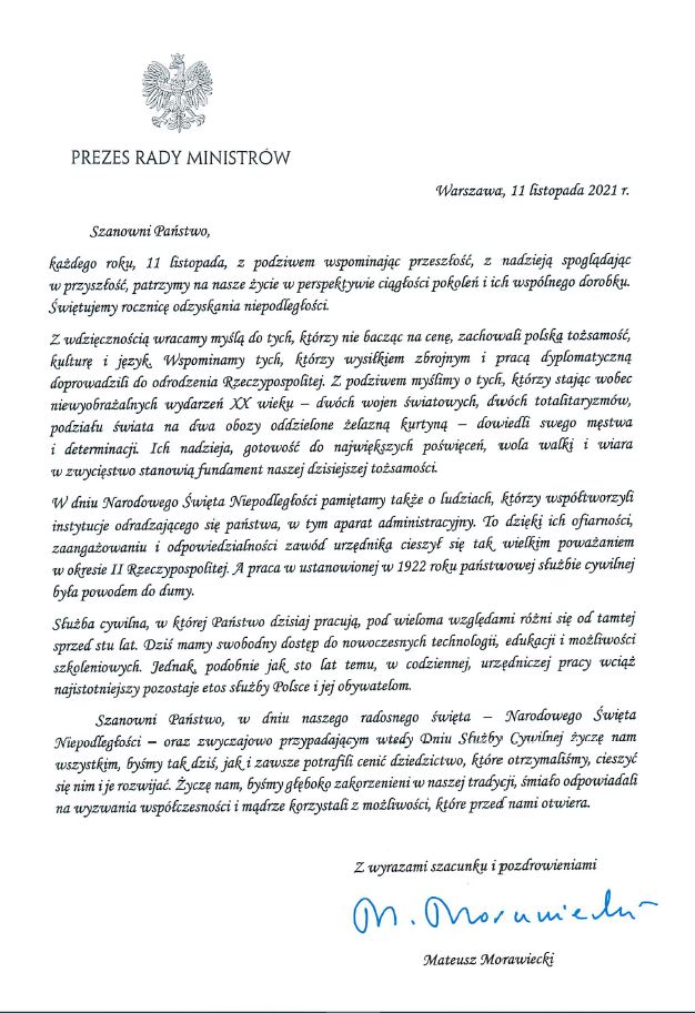 Życzenia Prezesa Rady Ministrów z okazji 103. rocznicy odzyskania przez Polskę Niepodległościprezes_rady_ministr.jpg 0.12MB