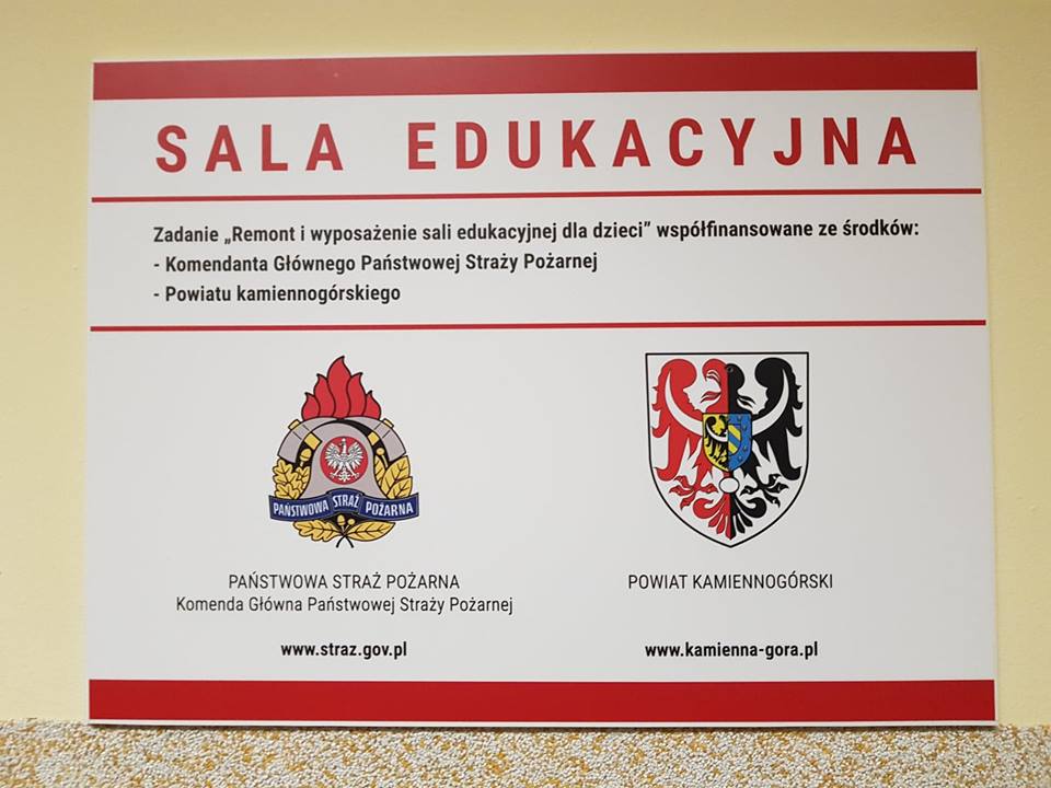 W dniu 17 grudnia 2018 r. nastąpiło uroczyste otwarcie Sali edukacyjnej w Komendzie Powiatowej PSP w Kamiennej Górze. Celem utworzenia Sali Edukacyjnej jest poprawa bezpieczeństwa uczniów oraz kształtowanie ich wiedzy i świadomości na temat zagrożeń zewnętrznych i umiejętności zachowania się w sytuacji wystąpienia zagrożenia. Akcja skierowana jest do najmłodszych uczniów szkół podstawowych. W ramach zajęć z zakresu bezpieczeństwa, strażacy prowadzą szkolenie zarówno teoretyczne, jak i praktyczne, z wykorzystaniem prezentacji multimedialnych i sprzętu pożarniczego.