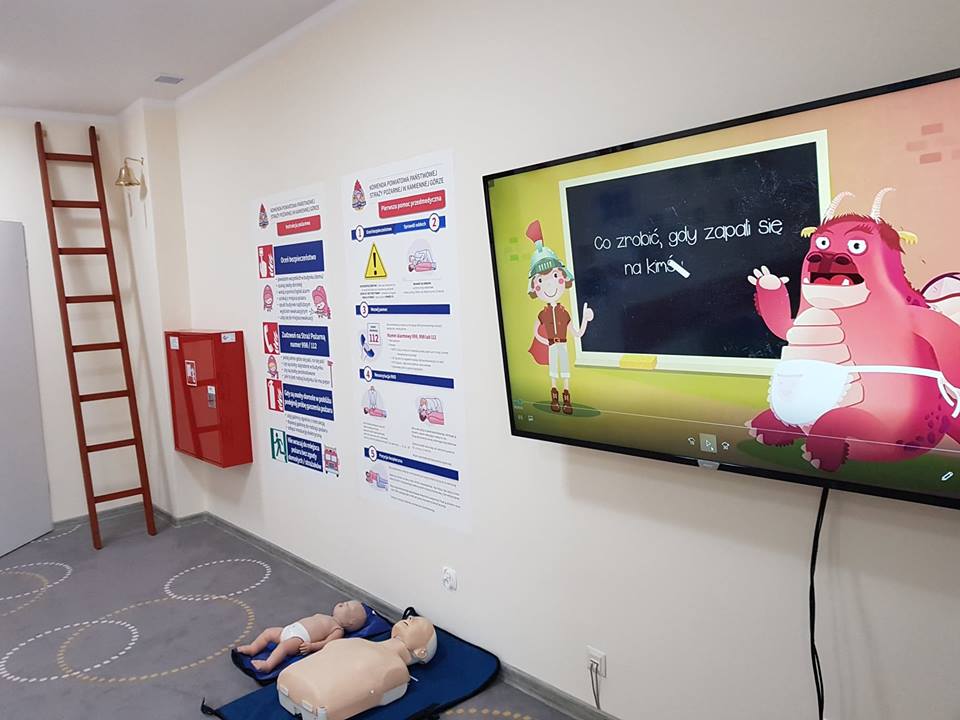 Ponadto dzieci mogą zobaczyć jak rozprzestrzenia się dym w warunkach pożaru, jak działają czujki dymu oraz tlenku węgla, jak nagrzewają się drzwi, za którymi powstał pożar oraz jak prawidłowo wzywać służby ratownicze i udzielać pierwszej pomocy osobom poszkodowanym. Na realizację zadania w siedzibie Komendy Powiatowej Państwowej Straży Pożarnej w Kamiennej Górze przystosowano pomieszczenia na cele dydaktyczne w odzwierciedleniem pomieszczenia przypominającego typowe mieszkanie (pokój w którym powstał pożar) wraz ze sprzętem i wyposażeniem, które mogą być źródłem zagrożeń pożarowych lub zatrucia tlenkiem węgla.