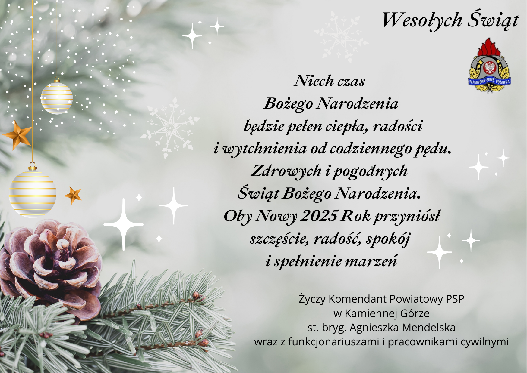 Świąteczne życzenia kierownictwa Komendy Powiatowej PSP w Kamiennej Górze