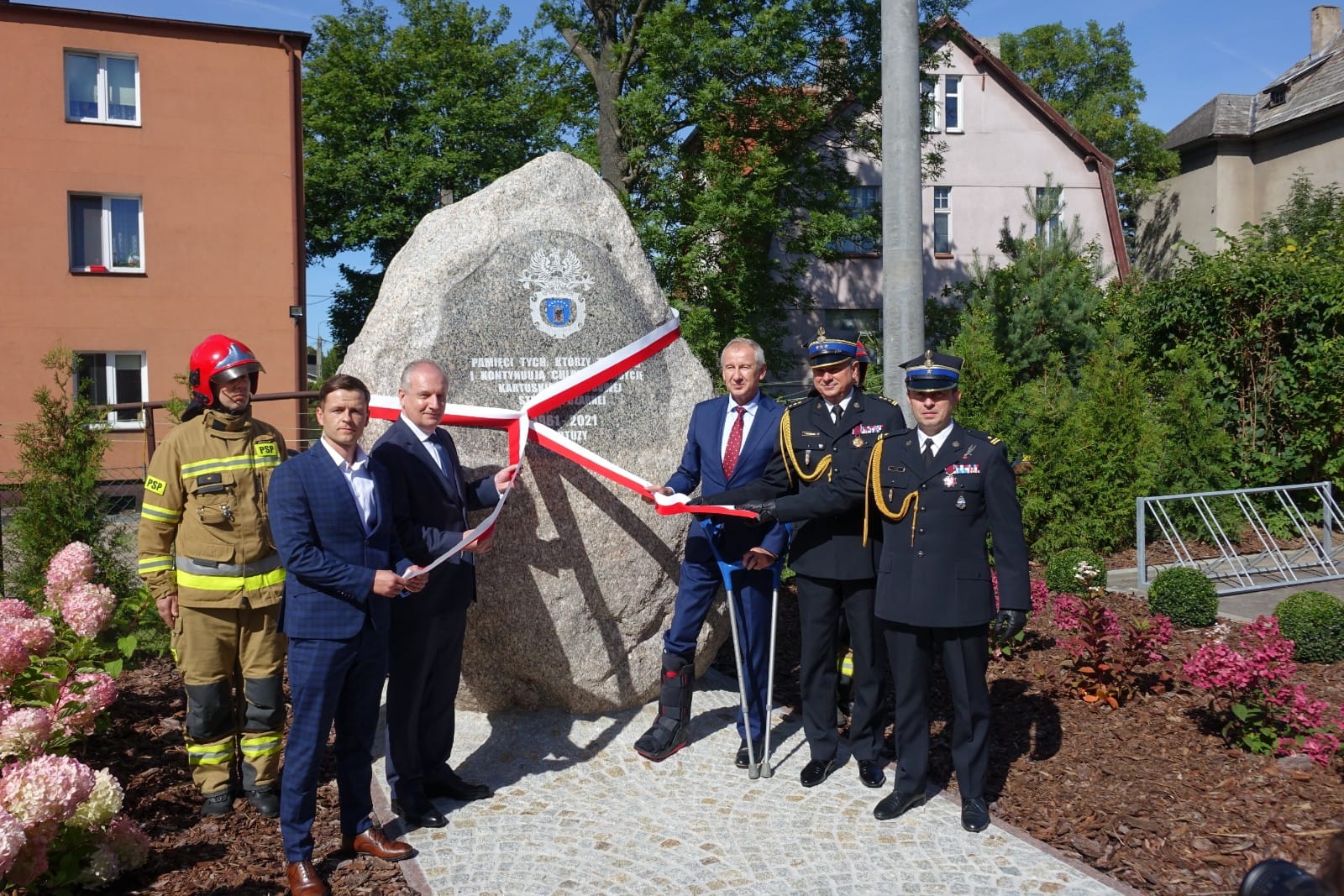 Z okazji jubileuszu odsłonięto obelisk upamiętniający twórców i kontynuatorów chlubnych tradycji kartuskiej Zawodowej Straży Pożarnej.