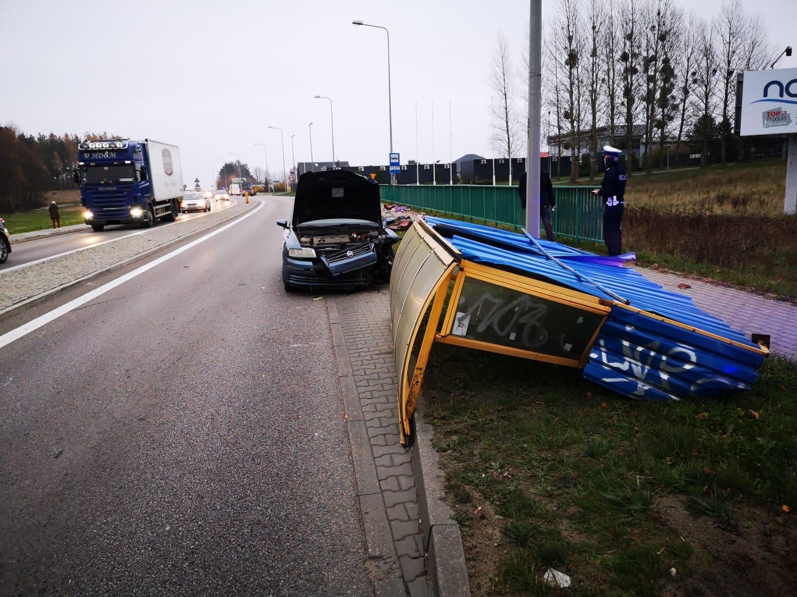 Borkowo - samochód uderzył w wiatę przystanku