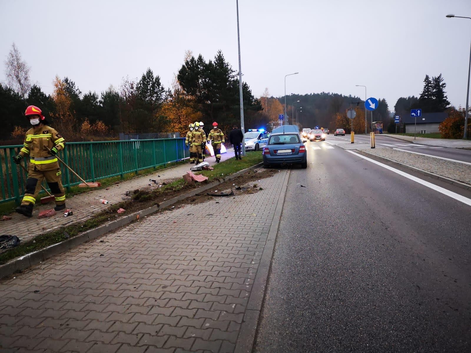 Po przybyciu na miejsce pierwszych zastępów stwierdzono, że w samochód osobowy, którym podróżowała jedna osoba, uderzył w wiatę przystanku. Kierowca samochodu znajdował się poza pojazdem bez widocznych obrażeń.