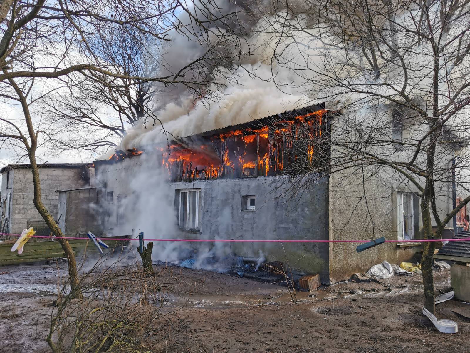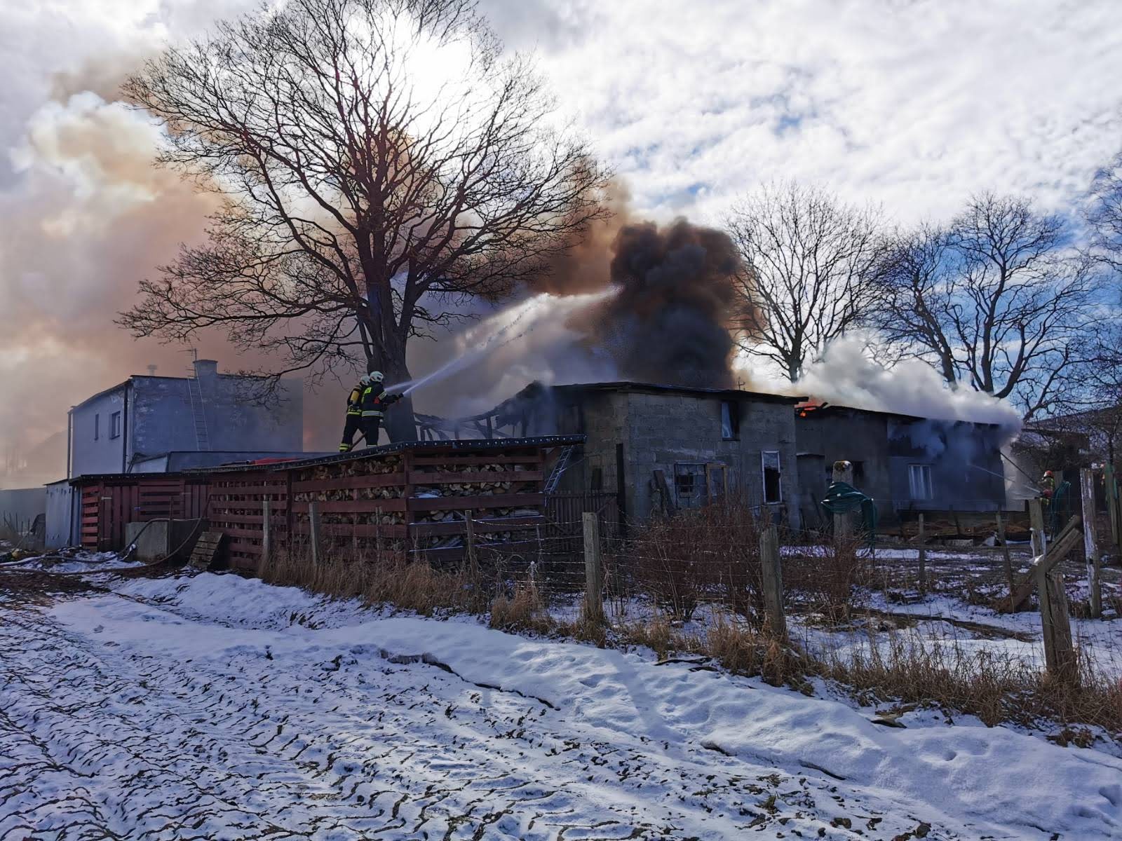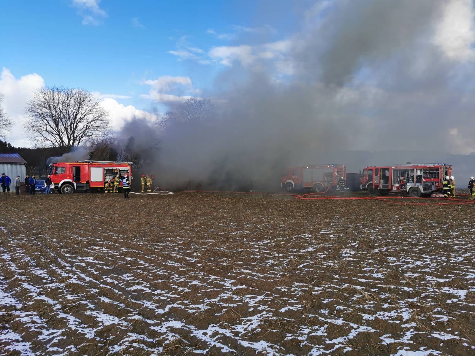 Pierwszy przybyły na miejsce zdarzenia kierujący działaniem ratowniczym stwierdził, że pali się budynek mieszkalny połączony z oborą i przystawionym do niej budynekiem gospodarczym. Pożar swym zasięgiem obejmował całe poddasze, oborę i pomieszczenia gospodarcze. Na miejscu znajdował się właściciel obiektu z widocznymi oparzeniami na twarzy.