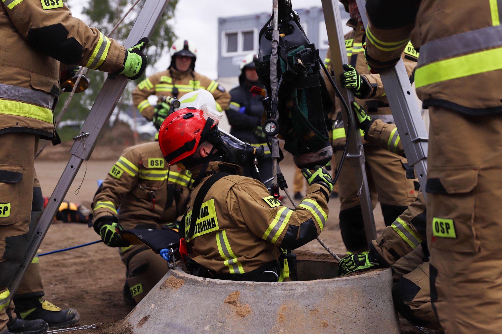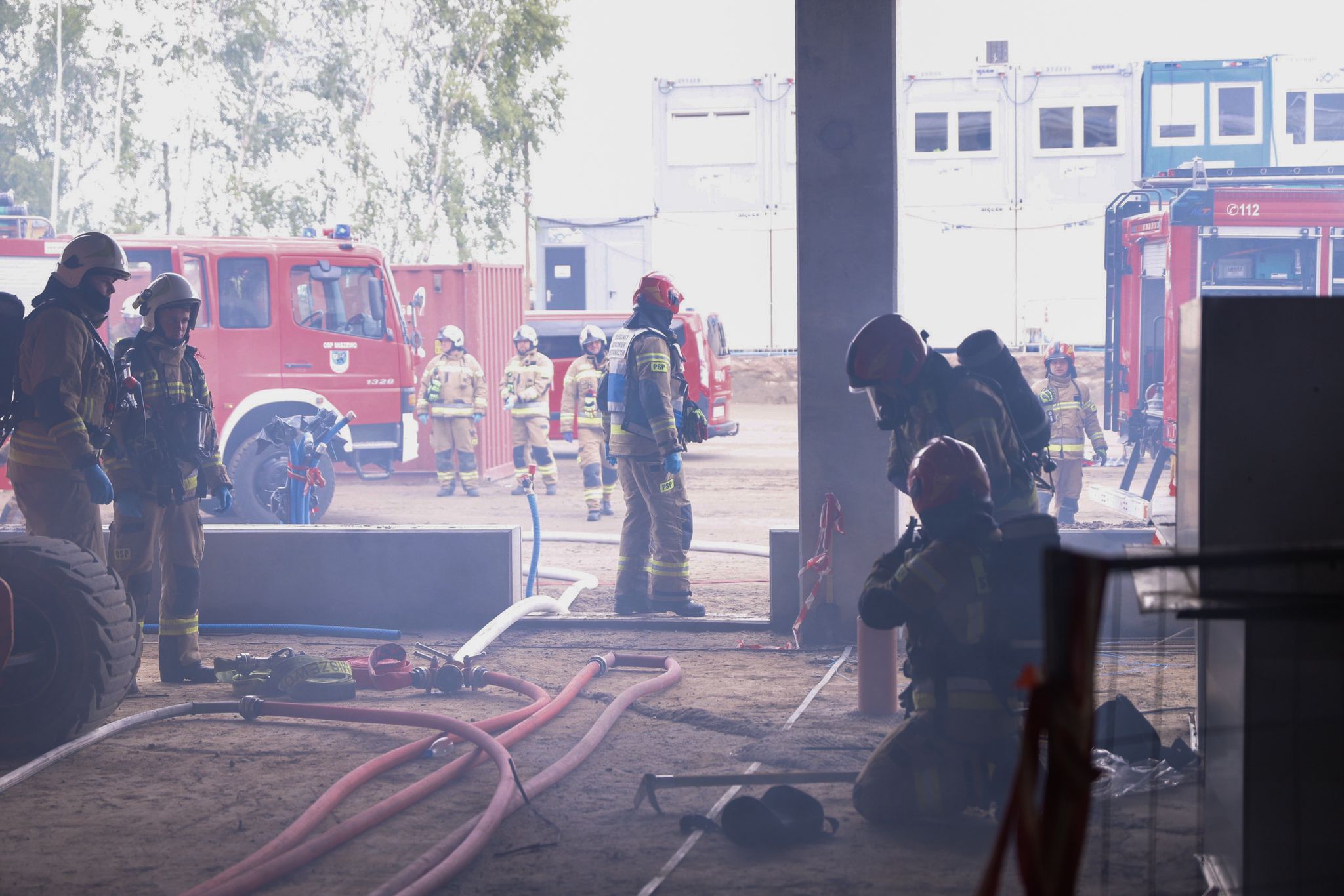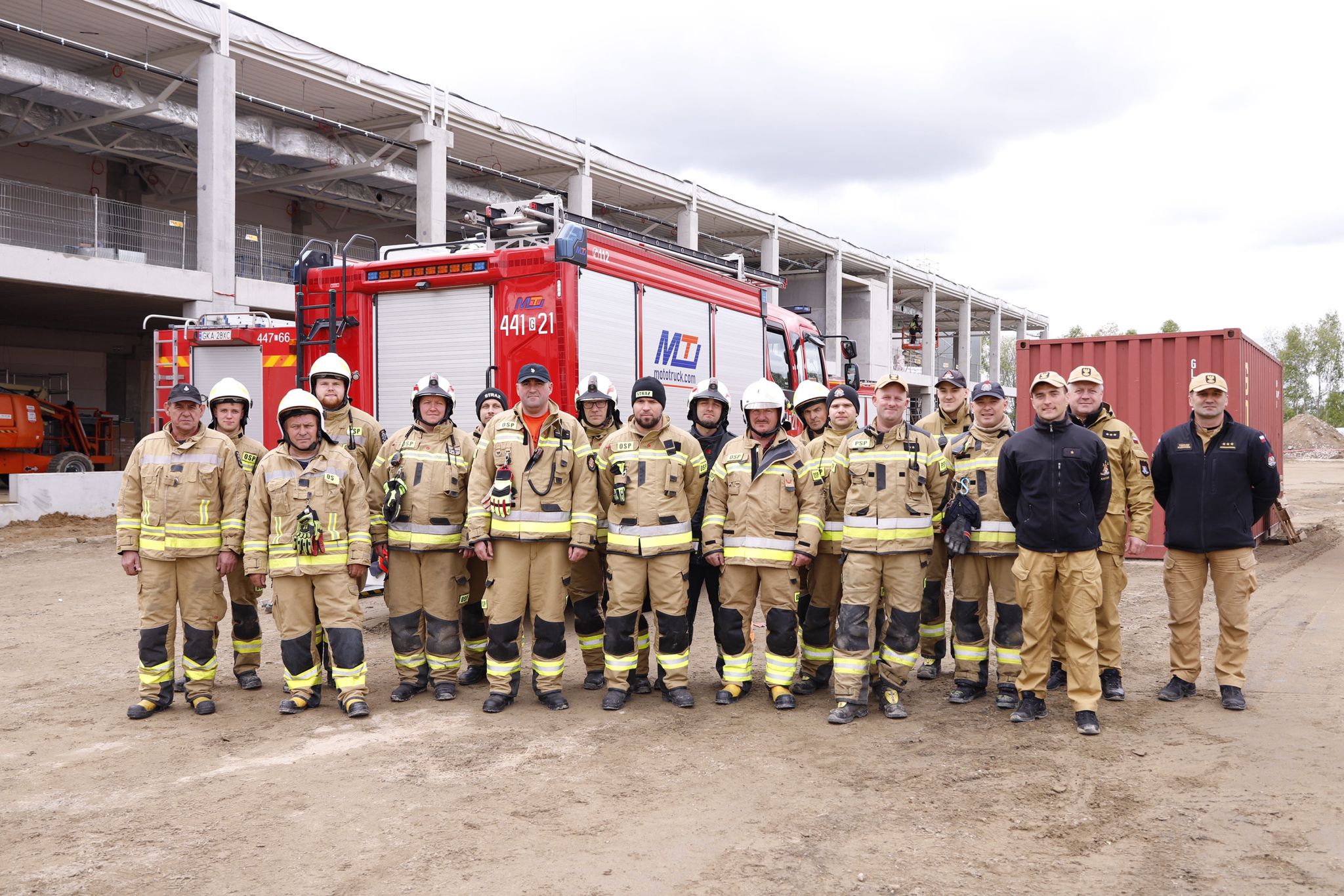 W dniu 16 maja 2025 roku na terenie budowy nowej hali firmy Danfoss Poland Sp. z o.o. w Tuchomiu przeprowadzono ćwiczenia z zakresu działań gaśniczych w obiektach produkcyjno-magazynowych oraz ewakuacji osób poszkodowanych z trudno dostępnych miejsc.