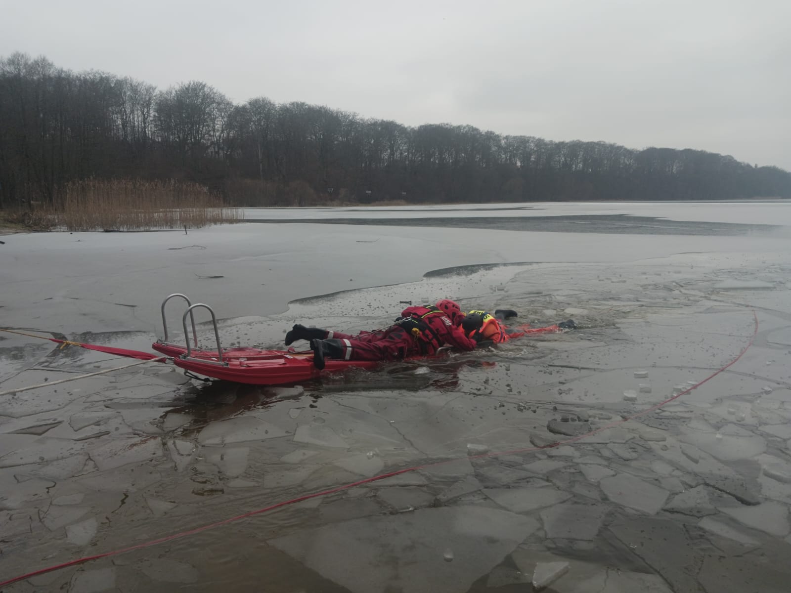 W dniach 13-15 lutego 2023 r. na jeziorze Tuchomskim, leżacym w rejonie współdziałania z Komendą Miejską PSP w Gdyni, odbyły się ćwiczenia z zakresu ratownictwa lodowego na zmarzniętych akwenach. Celem ćwiczeń było doskonalenie umiejętności z zakresu poruszania się po lodzie przy użyciu podstawowego sprzętu do ratownictwa lodowego, metod i technik podejmowania osób poszkodowanych z wody oraz ich ewakuacji na brzeg. W poszczególnych dniach udział w ćwiczeniach brali udział strażacy z JRG Kartuzy, JRG nr 1, 3 i 4 w Gdyni, OSP Żukowo, OSP Chwaszczyno, OSP Tokary i OSP Banino.