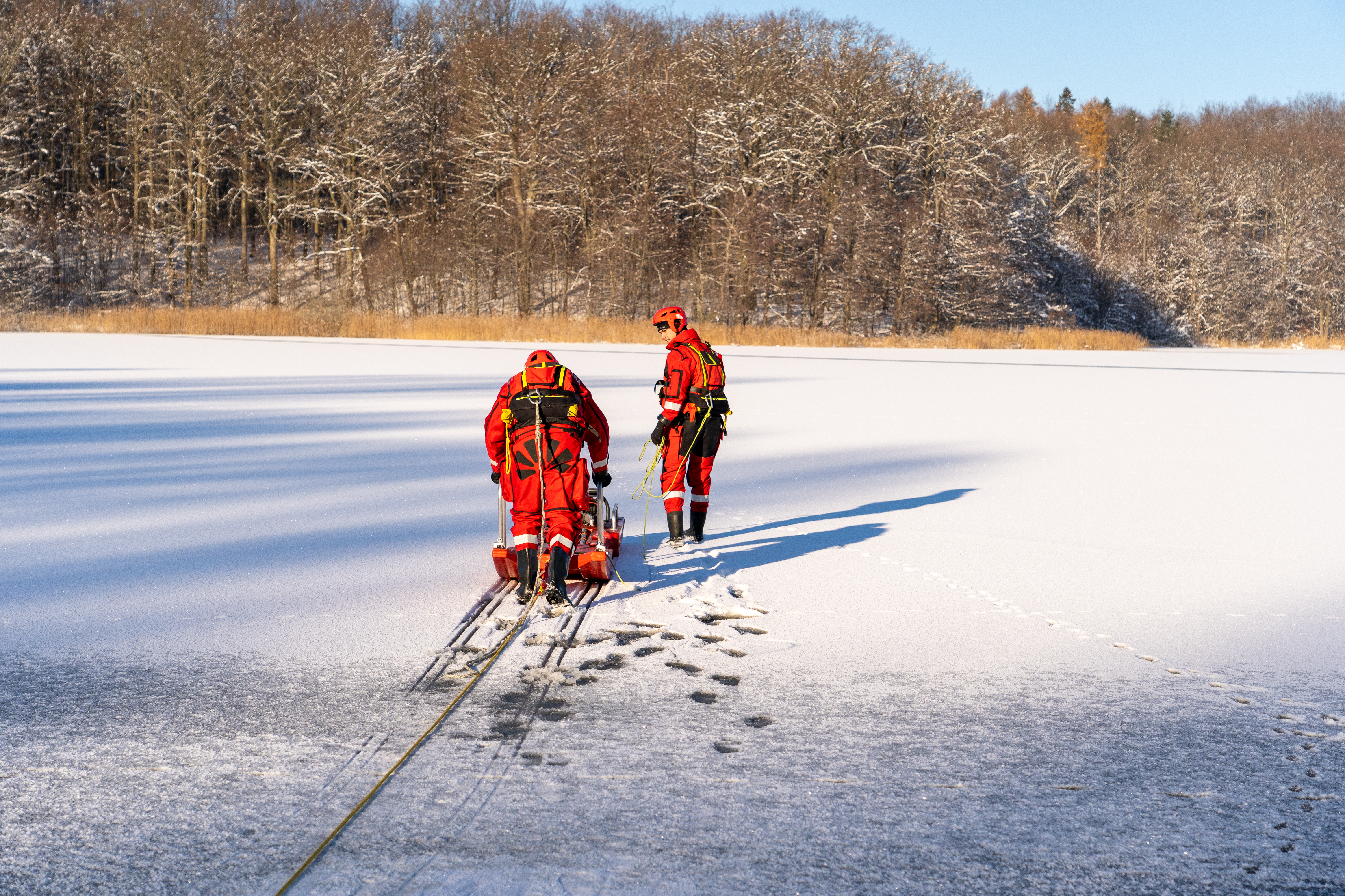 W dniach od 5 do 7 grudnia 2023 r. na jeziorze Klasztornym Dużym w Kartuzach przeprowadzono ćwiczenia z zakresu ratownictwa lodowego na zmarzniętych akwenach. Celem ćwiczeń było doskonalenie umiejętności z zakresu poruszania się po lodzie przy użyciu podstawowego sprzętu do ratownictwa lodowego, metod i technik podejmowania osób poszkodowanych z wody oraz ich ewakuacji na brzeg. W poszczególnych dniach udział w ćwiczeniach brali udział strażacy z JRG Kartuzy, OSP Dzierżążno, OSP Łapalice i OSP Goręczyno.