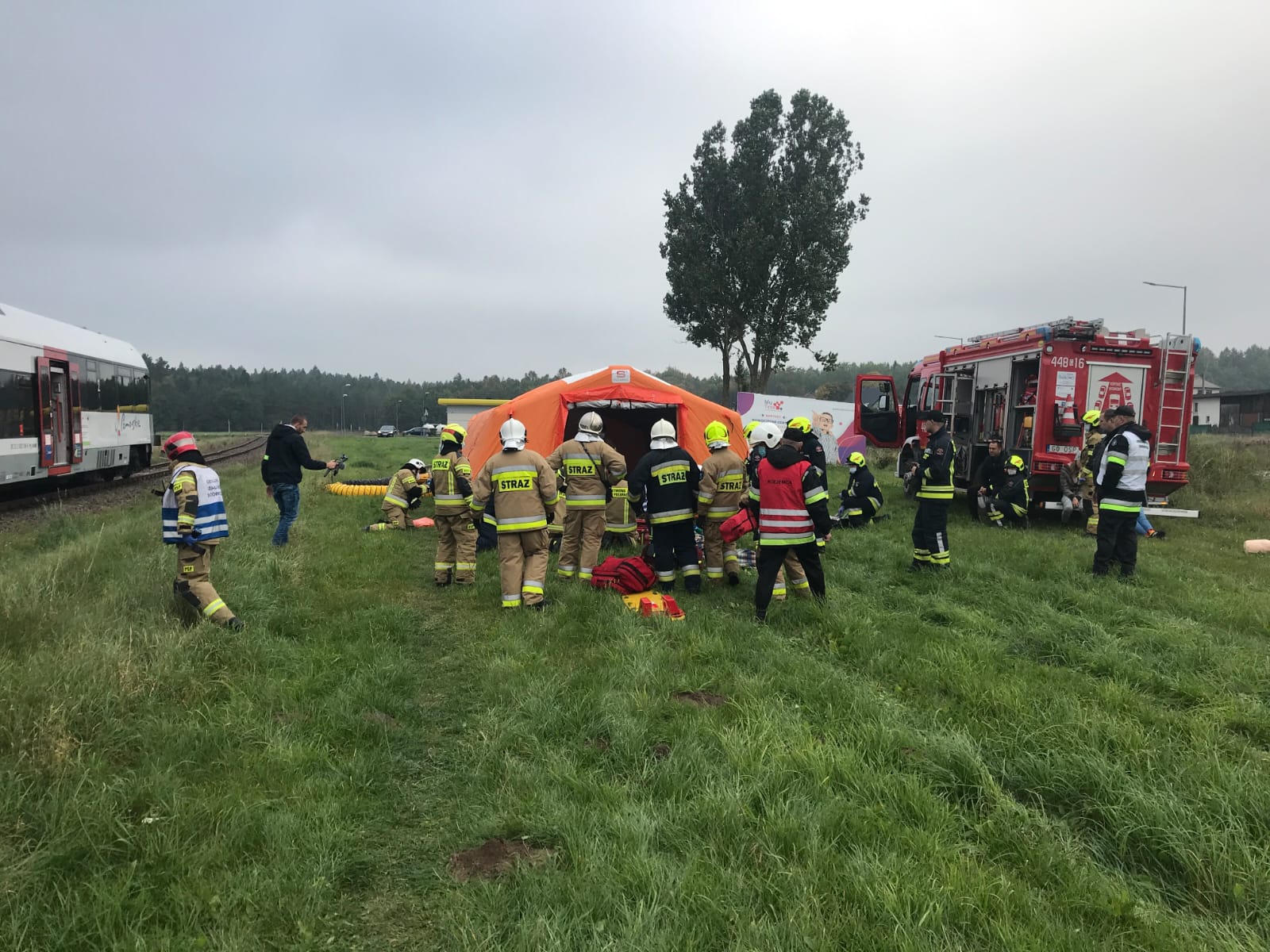 Ćwiczenia z zakresu działań ratowniczych przy wypadkach w transporcie kolejowym.
