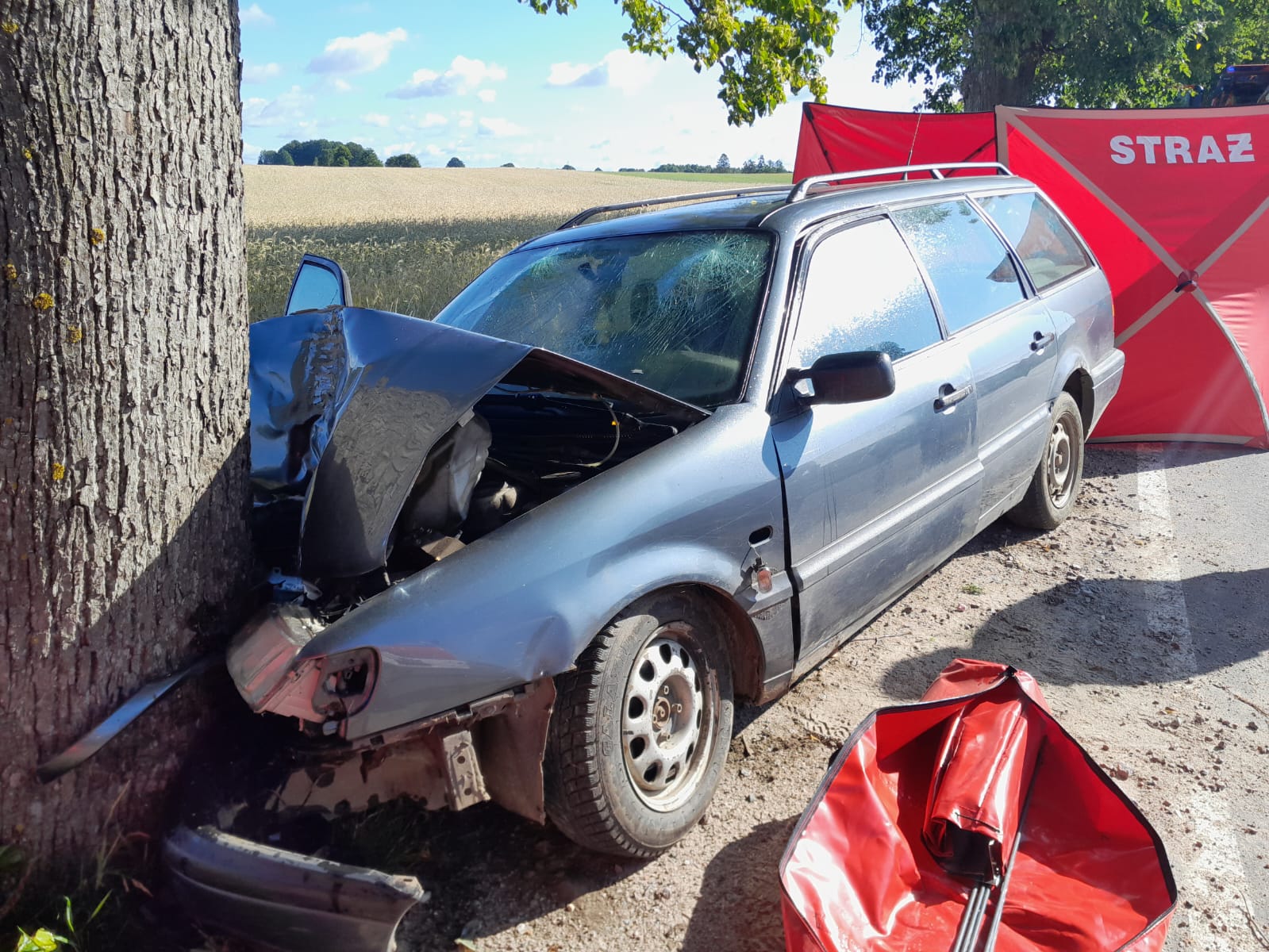 Po przybyciu na miejsce pierwszych zastępów stwierdzono, że samochód osobowy, którym podróżowały 2 osoby uderzył czołowo w przydrożne drzewo. Kierowca wraz z pasażerką znajdowali się w pojeździe bez zachowanych czynności życiowych.