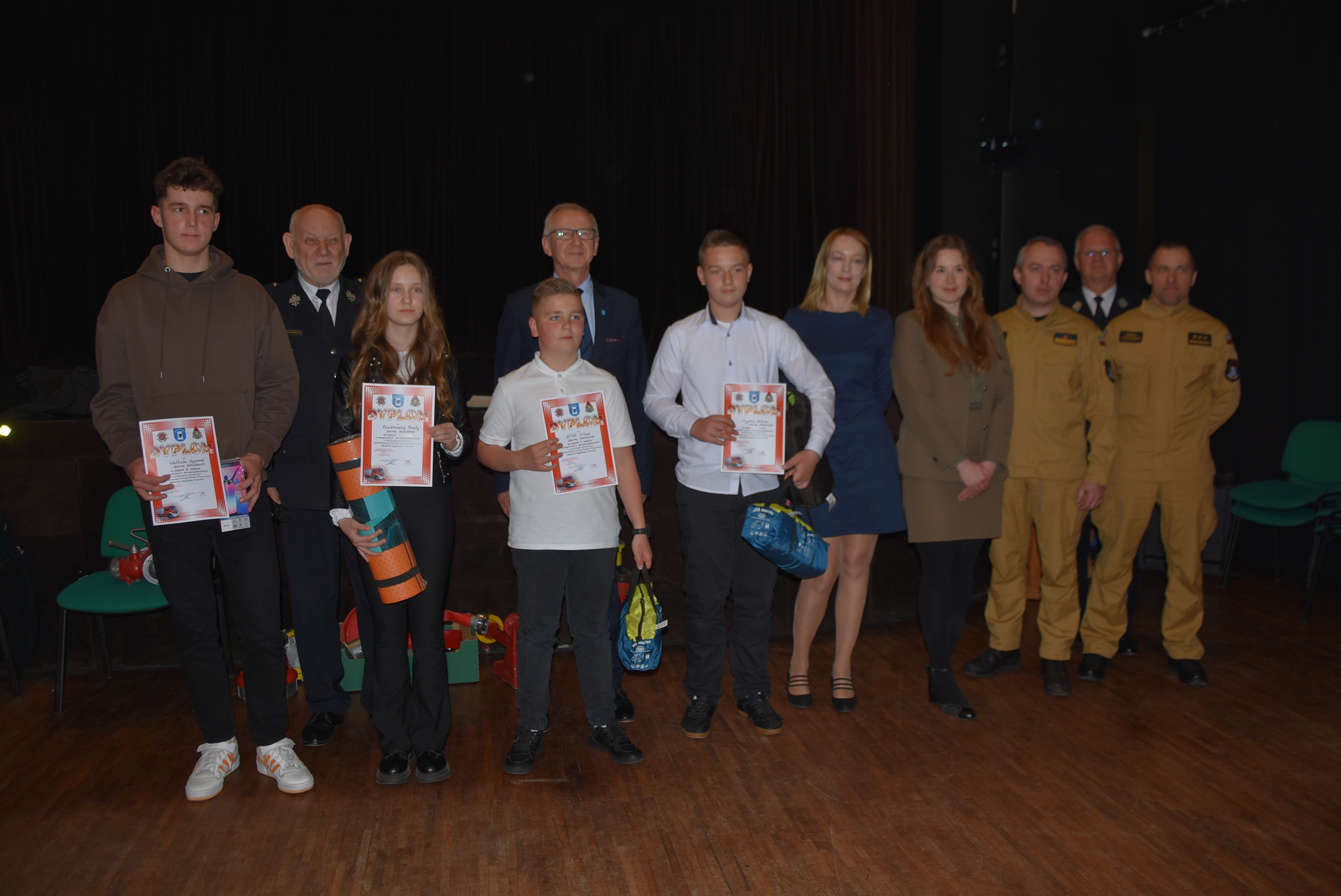 Finaliści z rąk Pana Bogdana Łapy, Starosty Kartuskiego oraz mł. bryg. Pawła Gila, Komendanta Powiatowego PSP w Kartuzach otrzymali nagrody ufundowane przez Starostwo Powiatowe w Kartuzach i Nadleśnictwo Kartuzy.