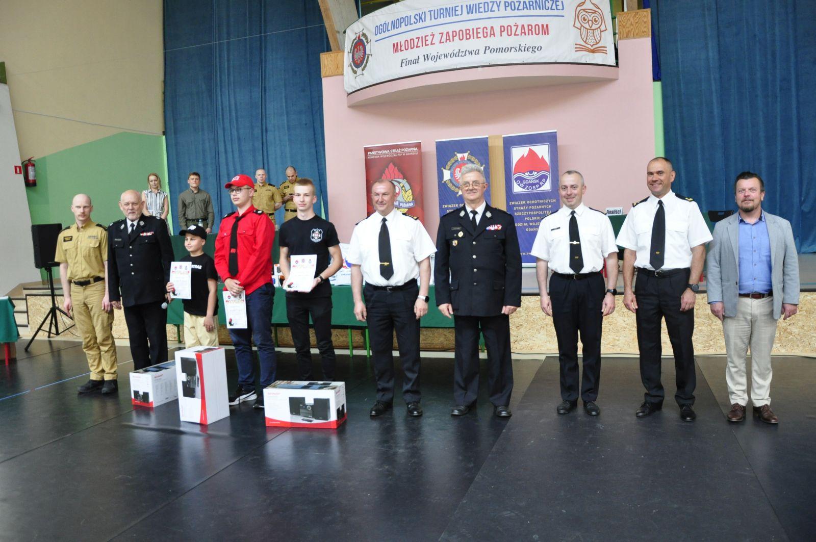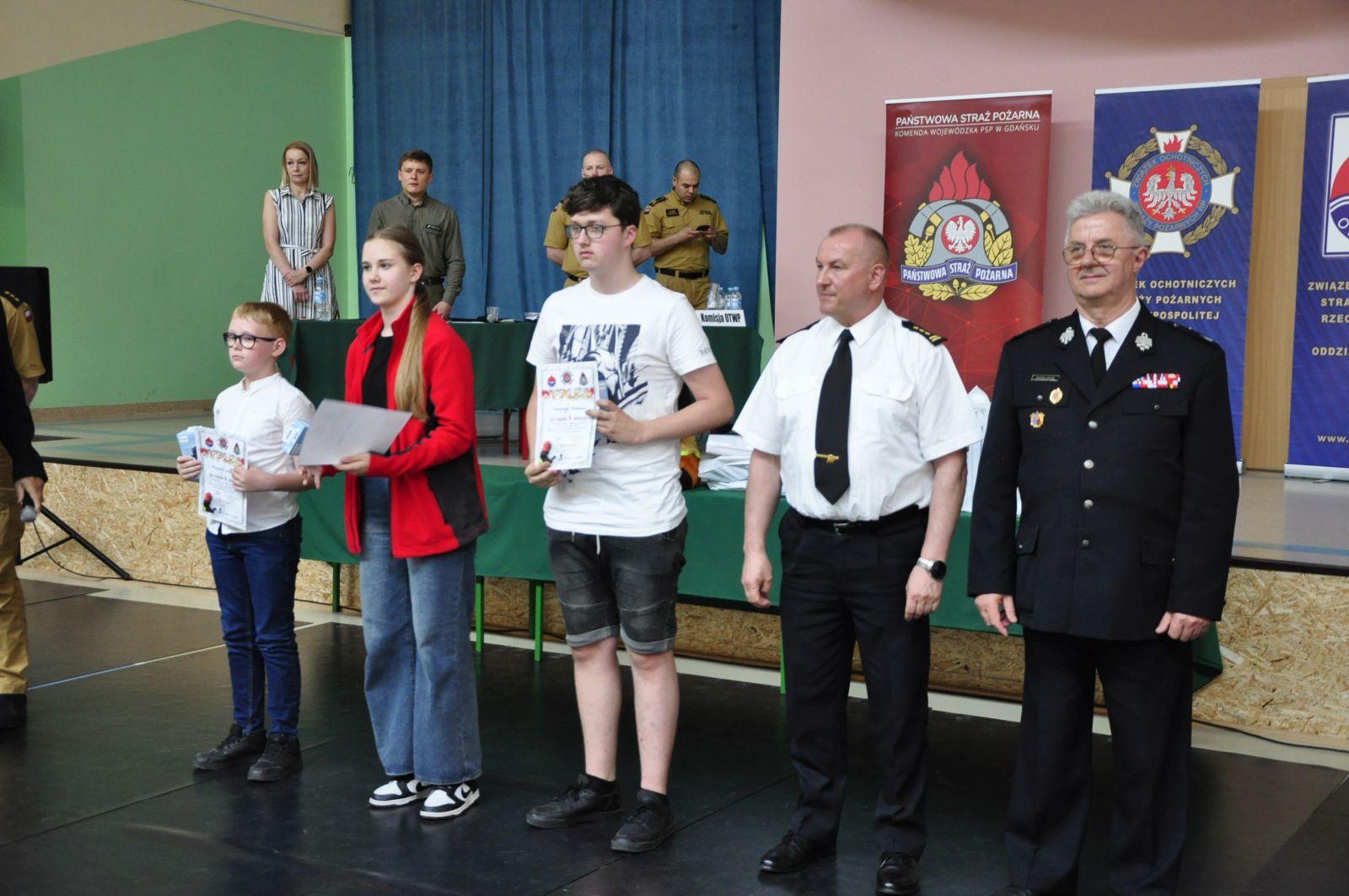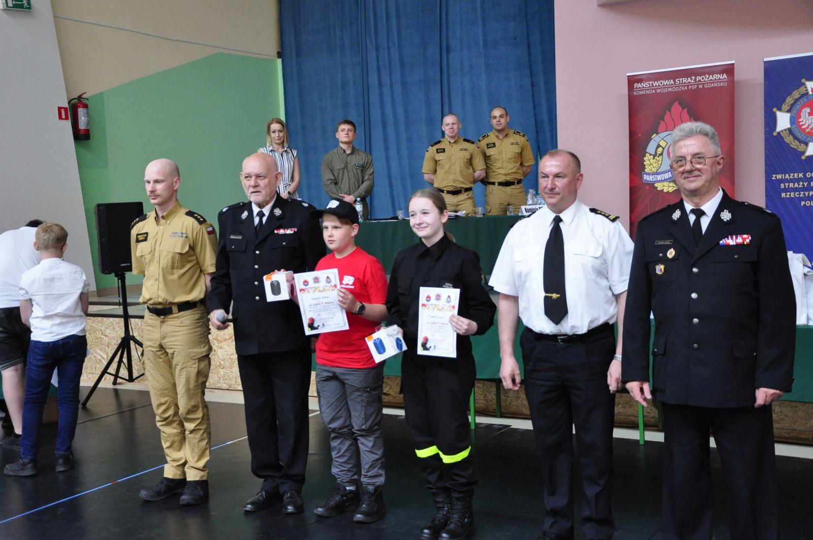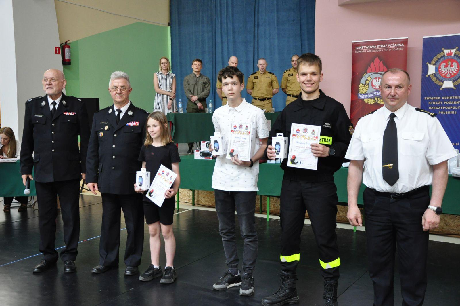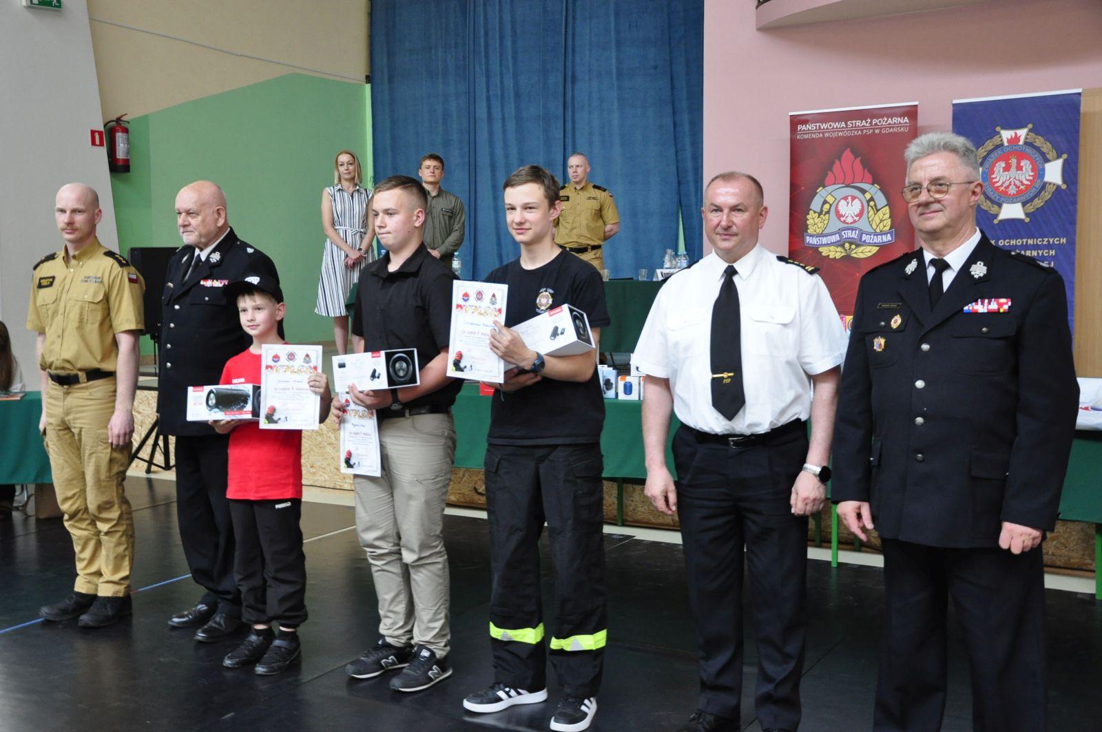 Laureaci konkursu odebrali nagrody z rąk st. bryg. Jacka Niewęgłowskiego, Pomorskiego Komendanta Wojewódzkiego PSP i dh. Marka Buzy, Prezesa Zarządu Oddziału Wojewódzkiego Związku Ochotniczych Straży Pożarnych RP w Gdańsku.