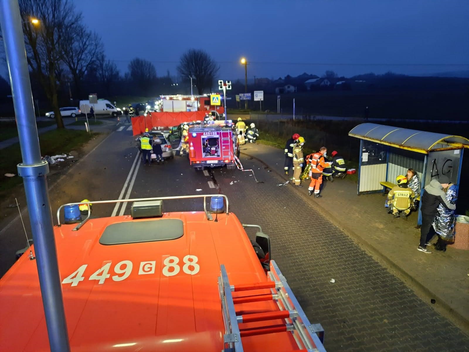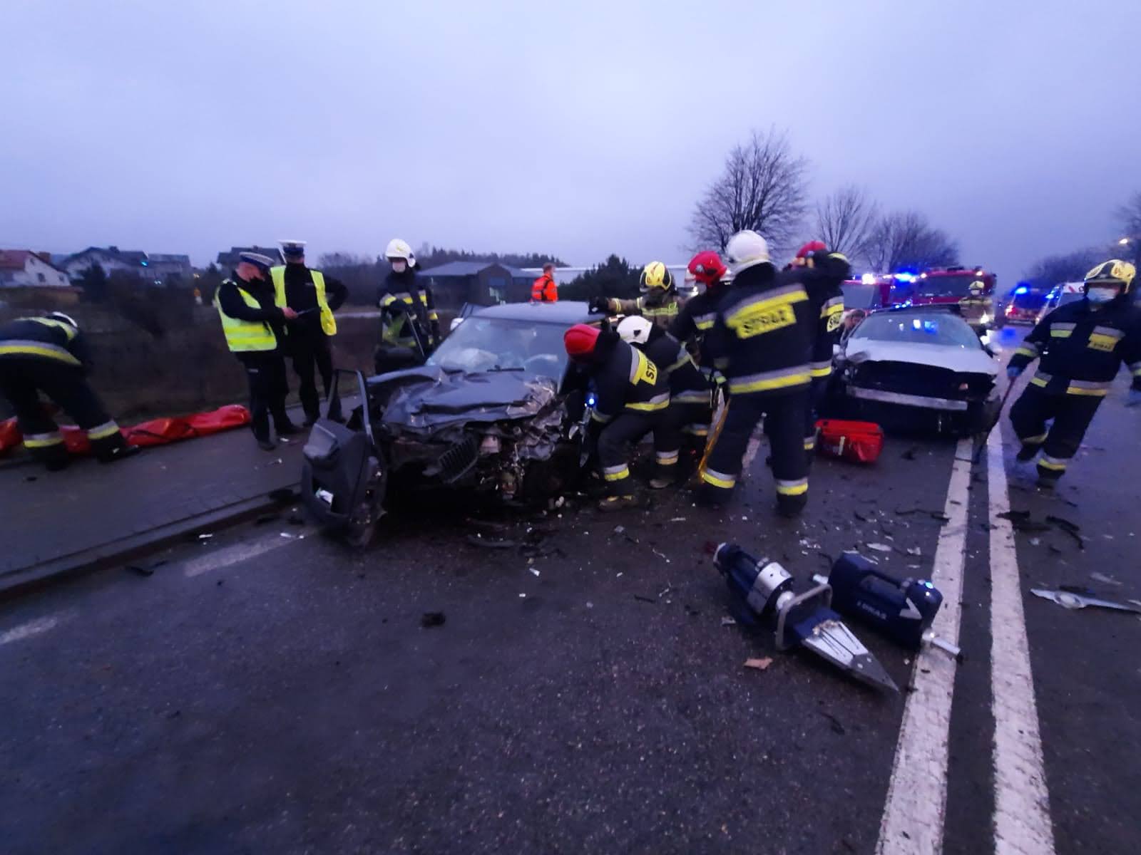 Działania straży polegały na zabezpieczeniu miejsca zdarzenia oraz udzieleniu Kwalifikowanej Pierwszej Pomocy osobom poszkodowanym. Równocześnie przy użyciu narzędzi hydraulicznych przystąpiono do wykonania dostępu do dwóch osób uwięzionych w pojeździe. Łącznie w wypadku ucierpiało 6 osób, które zostały przetransportowane do placówek medycznych.