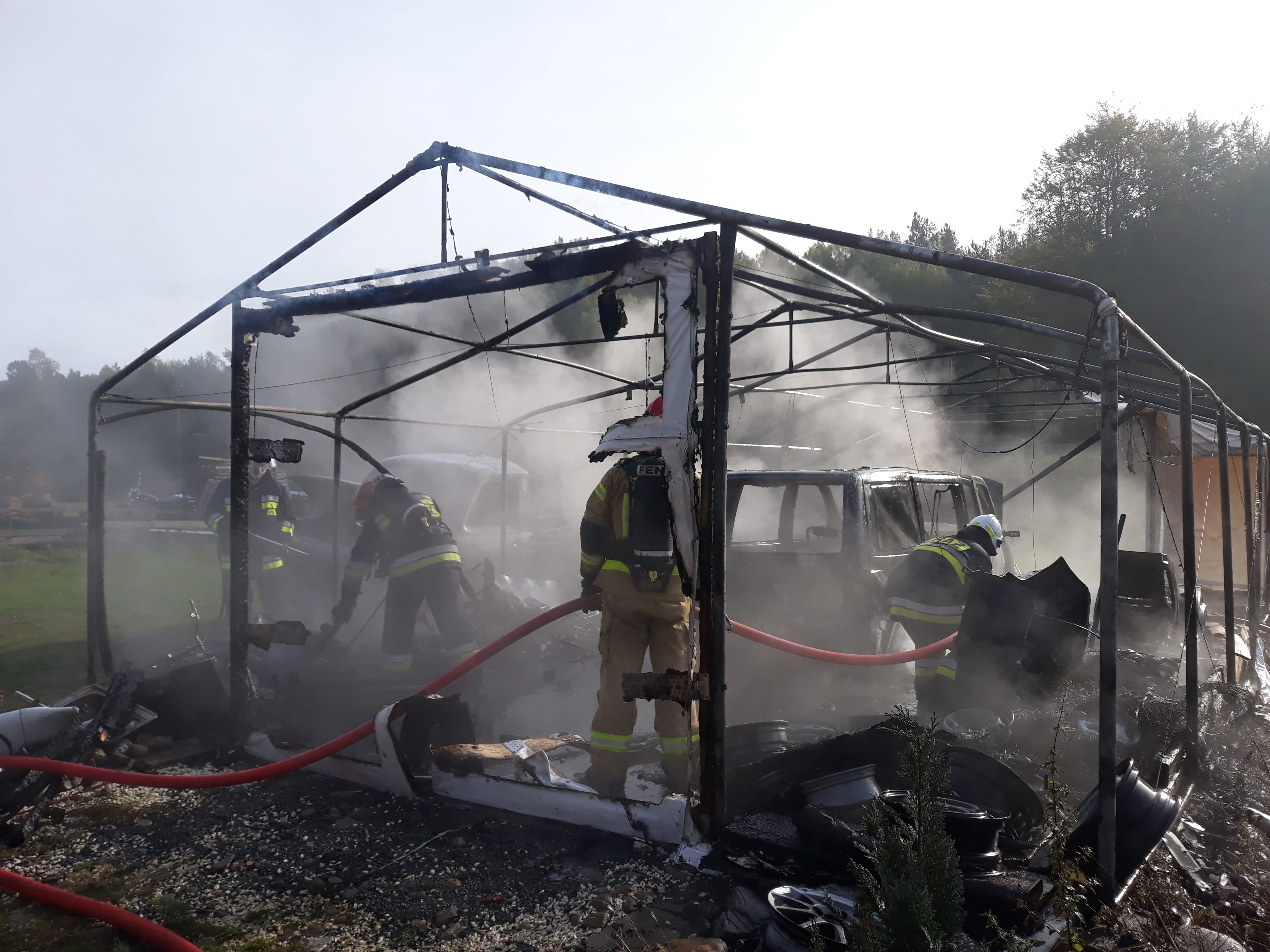 13 października 2020 roku o godz. 9:29 dyżurny operacyjny stanowiska kierowania komendanta powiatowego PSP w Kartuzach przyjął zgłoszenie o pożarze obiektu garażowego w miejscowości Gołubie.