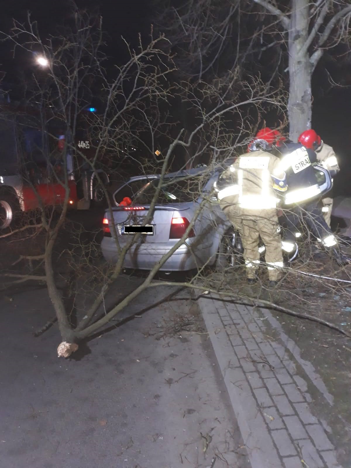 Po przybyciu na miejsce pierwszych zastępów stwierdzono, że w wypadku uczestniczył jeden samochód osobowy, który uderzył w przydrożne drzewo. Dwie osoby, które podróżowały pojazdem znajdowały się w samochodzie, przytomne z ogólnymi obrażeniami.