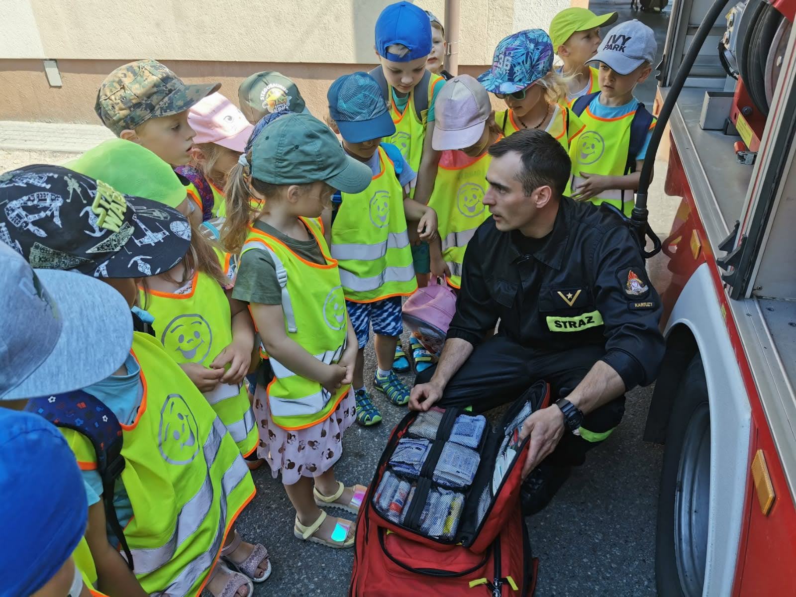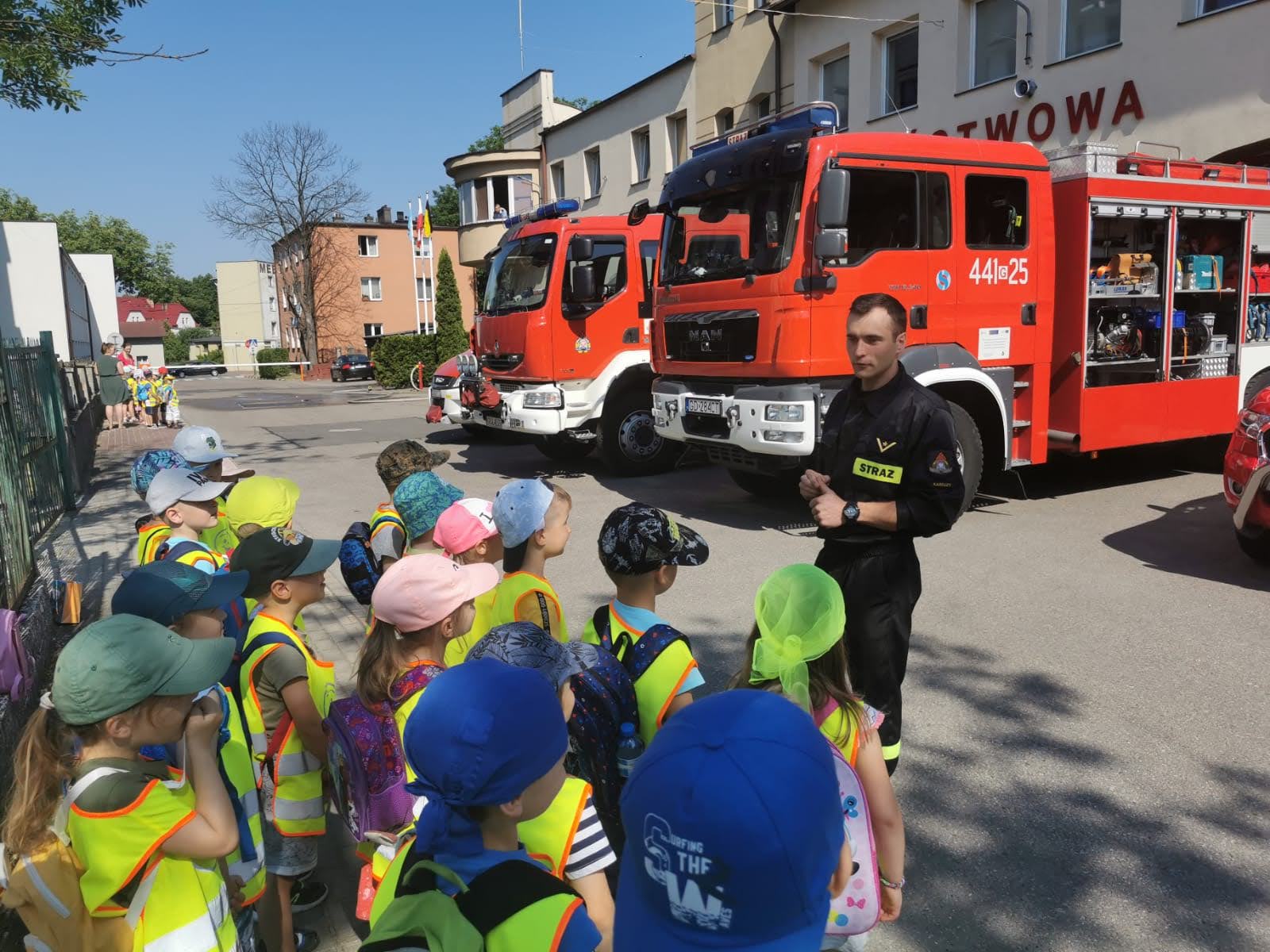18 czerwca 2021 r. Komendę Powiatową PSP w Kartuzach odwiedziły dzieci z placówki Szkolno Przedszkolnej przy Szkole Podstawowej nr II w Kartuzach. Dzieci miały okazję zapoznać się z charakterem pracy strażaka, sprzętem i pojazdami pożarniczymi, jak również zasadami i technikami działań podczas akcji ratowniczo-gaśniczych.