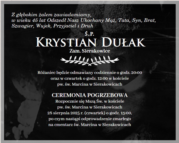 Komunikat dot. uroczystości pogrzebowej śp. Krystiana Dułaka