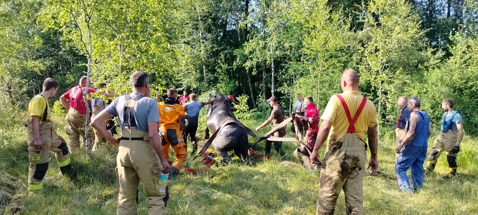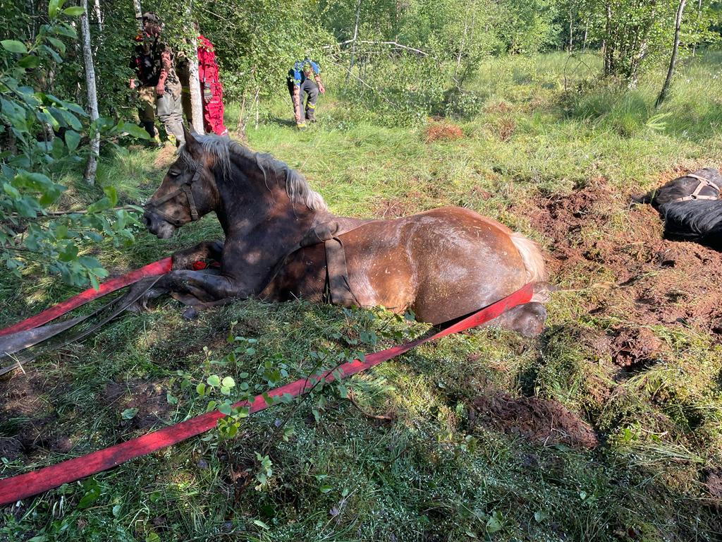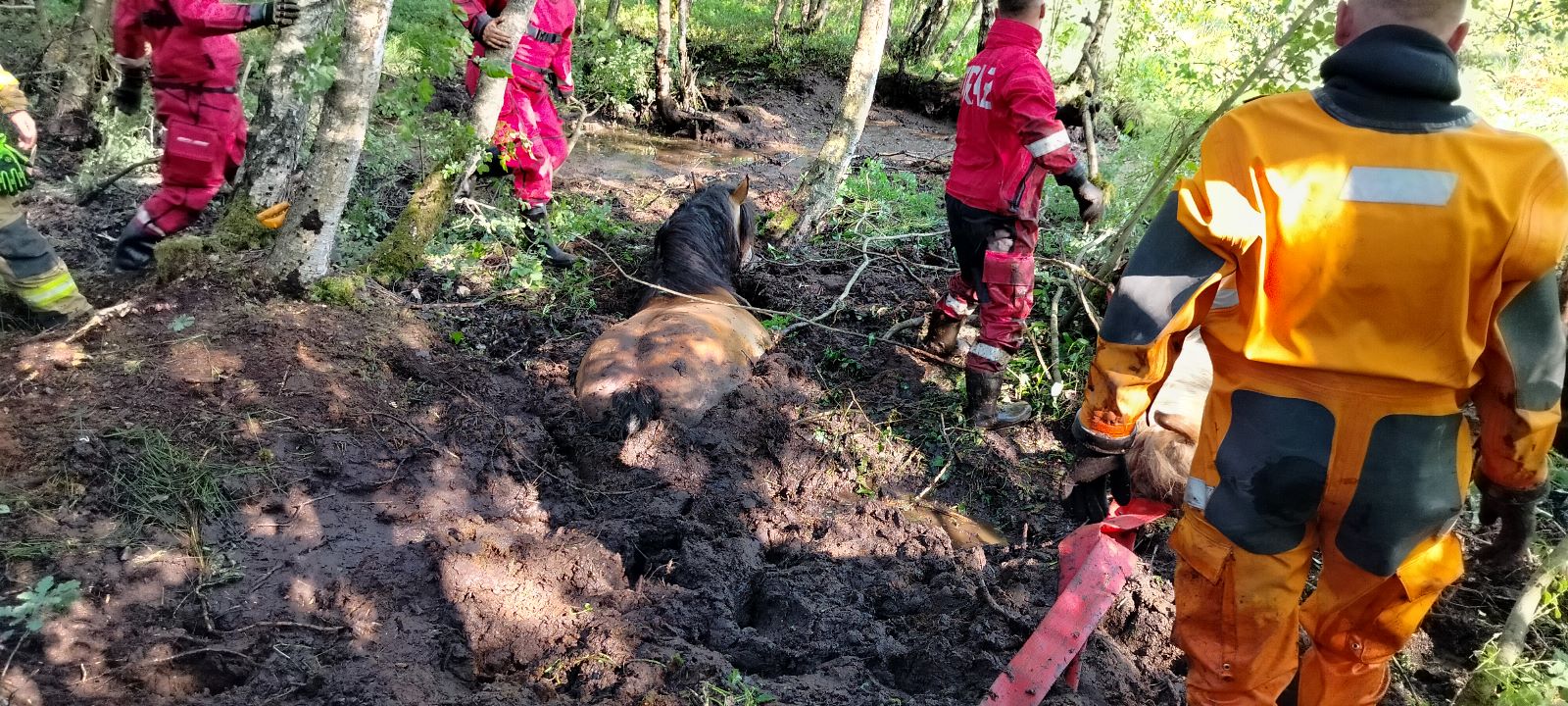 28 czerwca 2023 roku o godzinie 16:01 do stanowiska kierowania komendanta powiatowego PSP w Kartuzach wpłynęło zgłoszenie o koniach topiących się w bagnie pomiędzy miejscowościami Sławki i Egiertowo.
