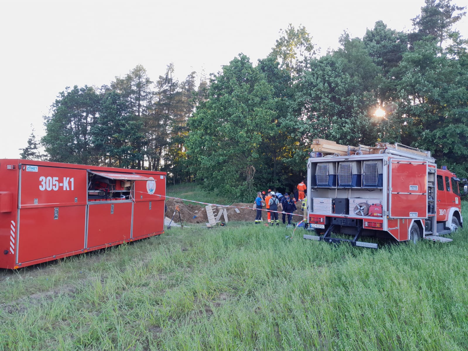 Po przybyciu na miejsce pierwszych zastępów stwierdzono, że w wykopie o głębokości ok. 4,5 m i szerokości ok. 1 m znajduje się przysypany ziemią mężczyzna.