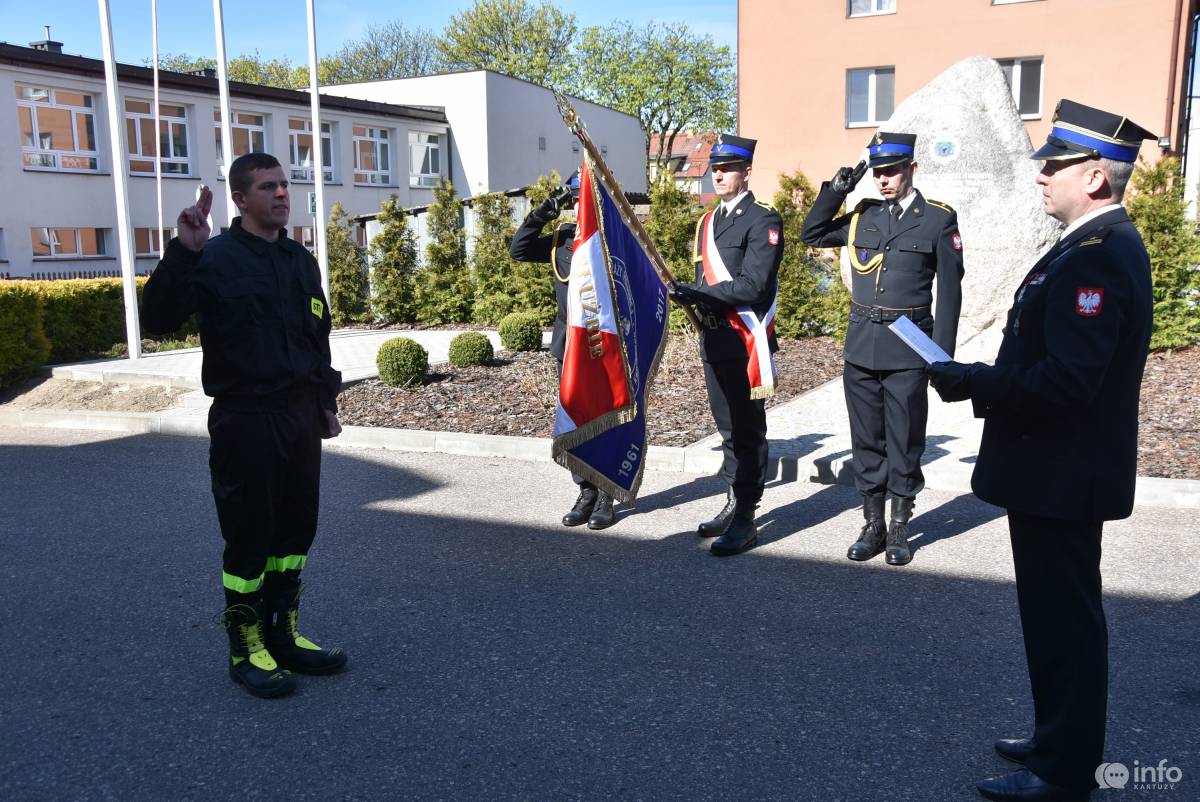 przemaszerowali na plac przed Komendą Powiatową Państwowej Straży Pożarnej w Kartuzach, gdzie odbyła się uroczysta zbiórka, która była okazją do złożenia ślubowania przez nowoprzyjętego funkcjonariusza do służby przygotowawczej w Państwowej Straży Pożarnej.