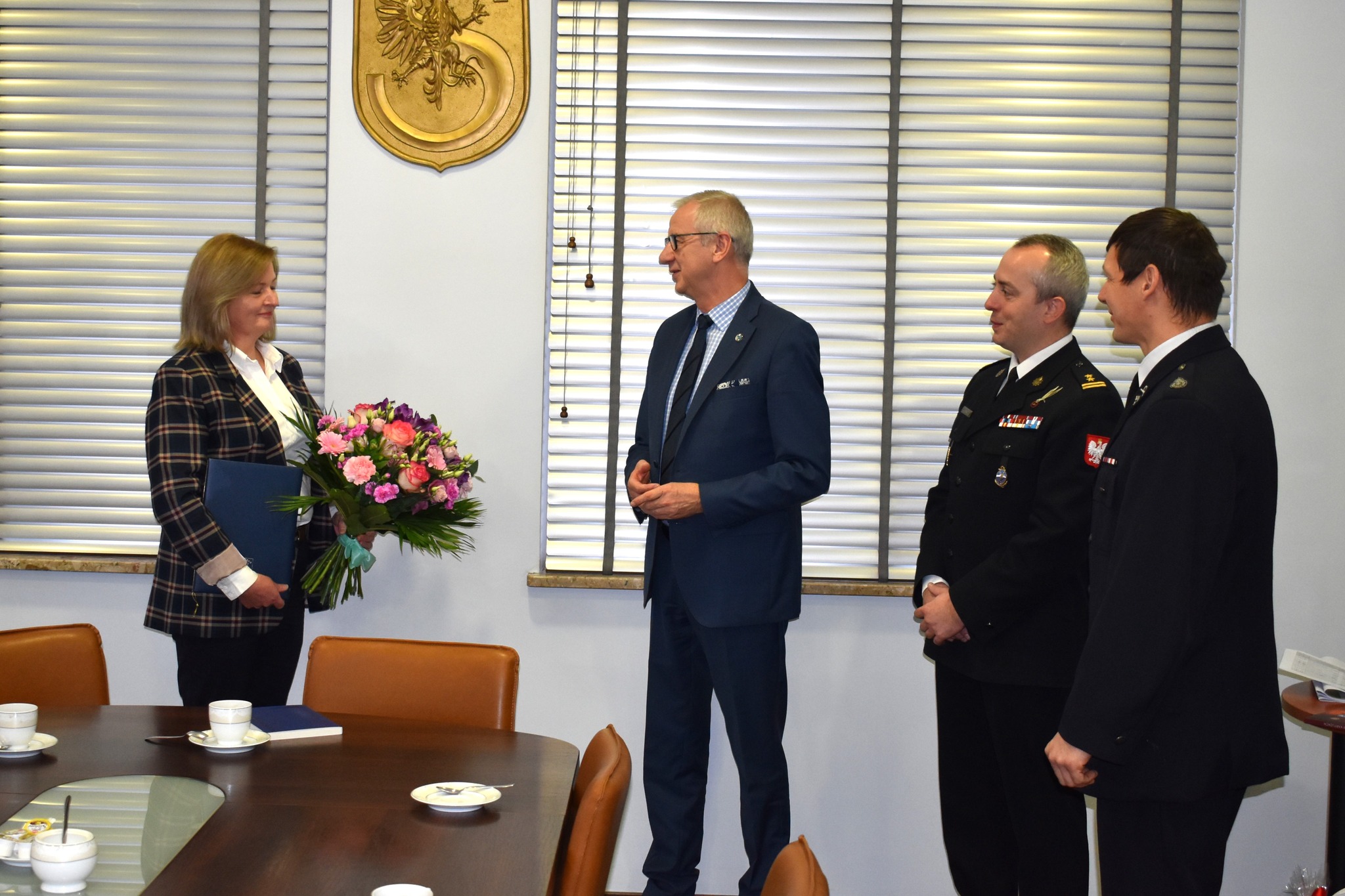 7 grudnia w Urzędzie Gminy w Sierakowicach odbyło się spotkanie, podczas którego Pani Renacie Mielewczyk za bohaterską postawę podziękowanie złożyli m.in.: Bogdan Łapa, Starosta Kartuski, bryg. Paweł Gil, Komendant Powiatowy PSP w Kartuzach, Zbigniew Fularczyk, Zastępca Wójta Gminy Sierakowice, Ewelina Lila, Sekretarz Gminy Sierakowice oraz dh Radosław Stenka, Prezes OSP w Sierakowicach wraz z druhami z jednostki.