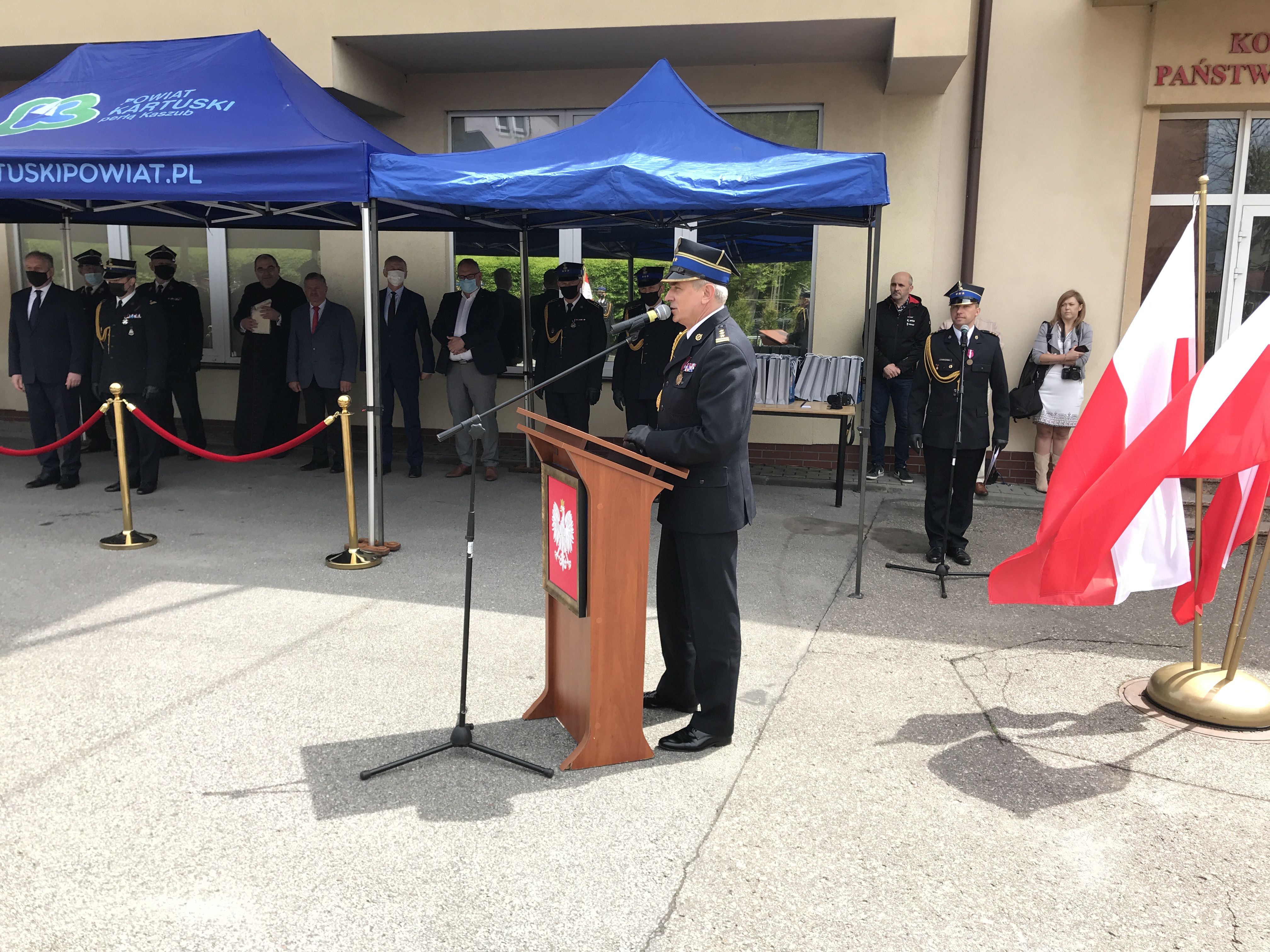 28 maja 2021 roku na placu przy Komendzie Powiatowej Państwowej Straży Pożarnej w Kartuzach odbył się uroczysty apel z okazji Powiatowych Obchodów Dnia Strażaka.