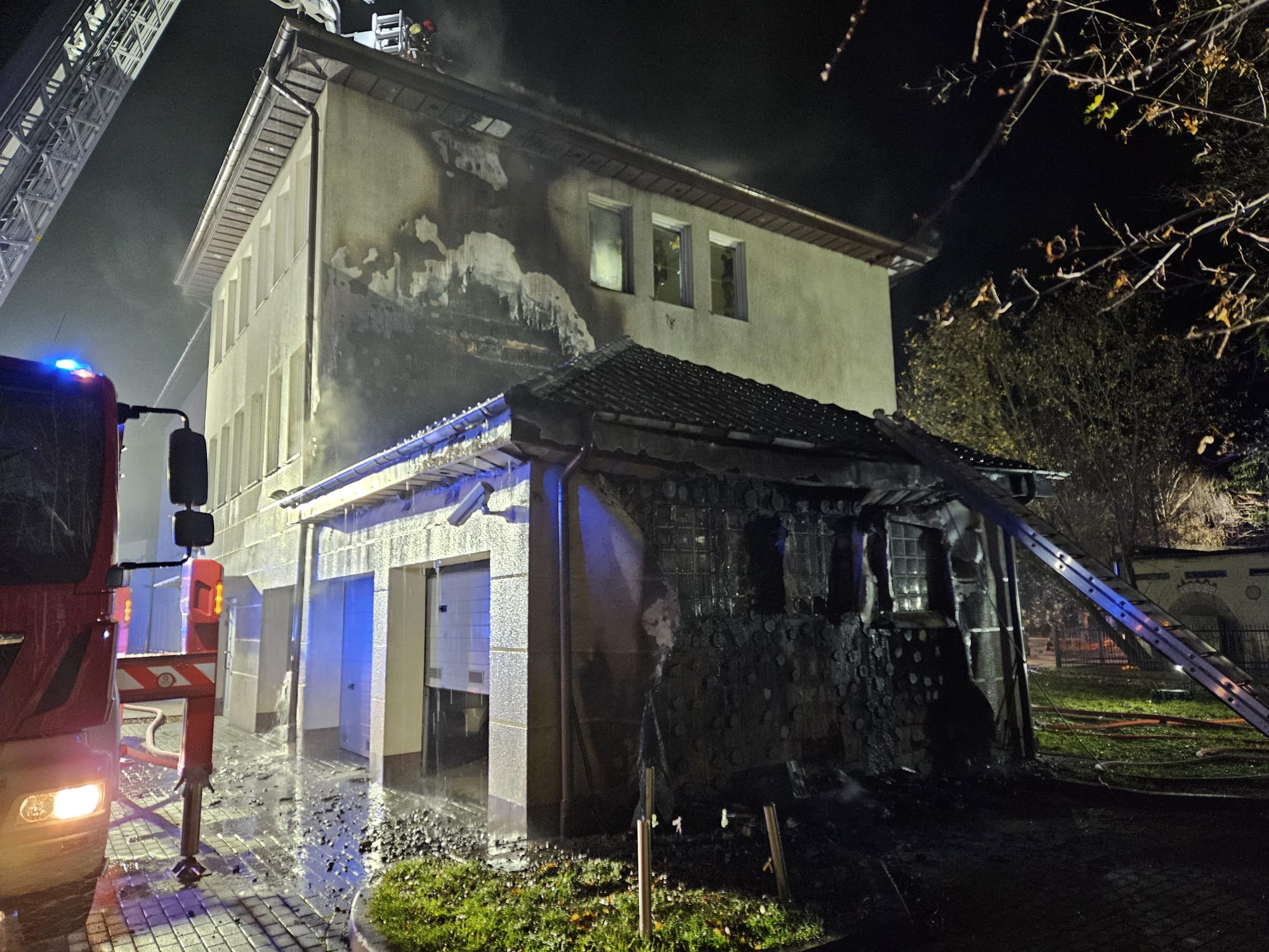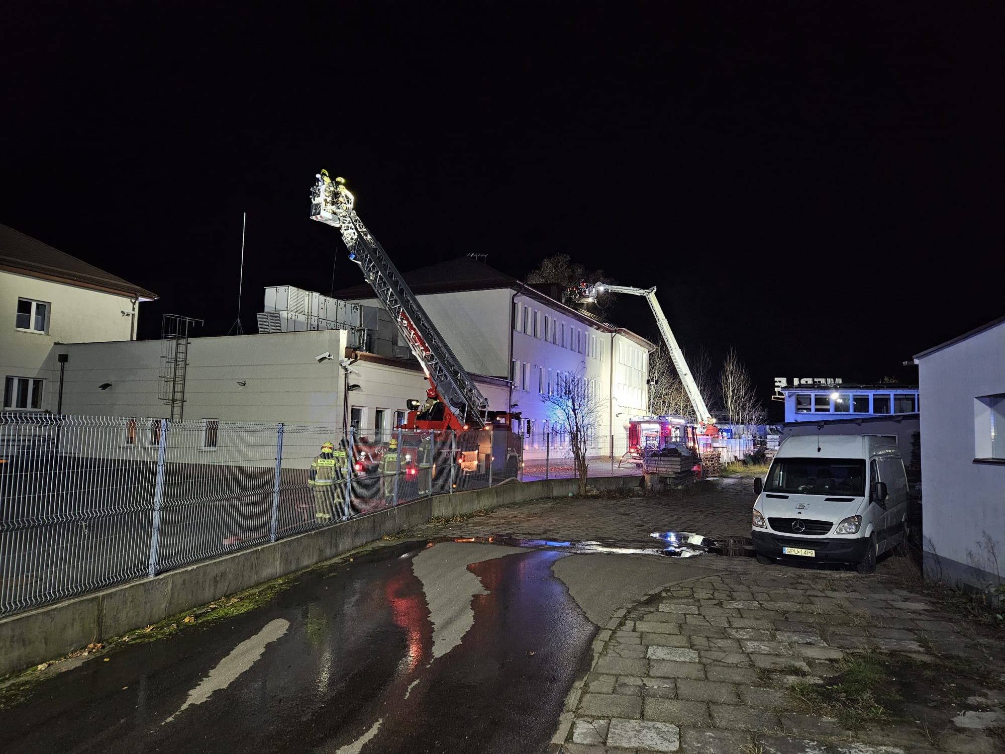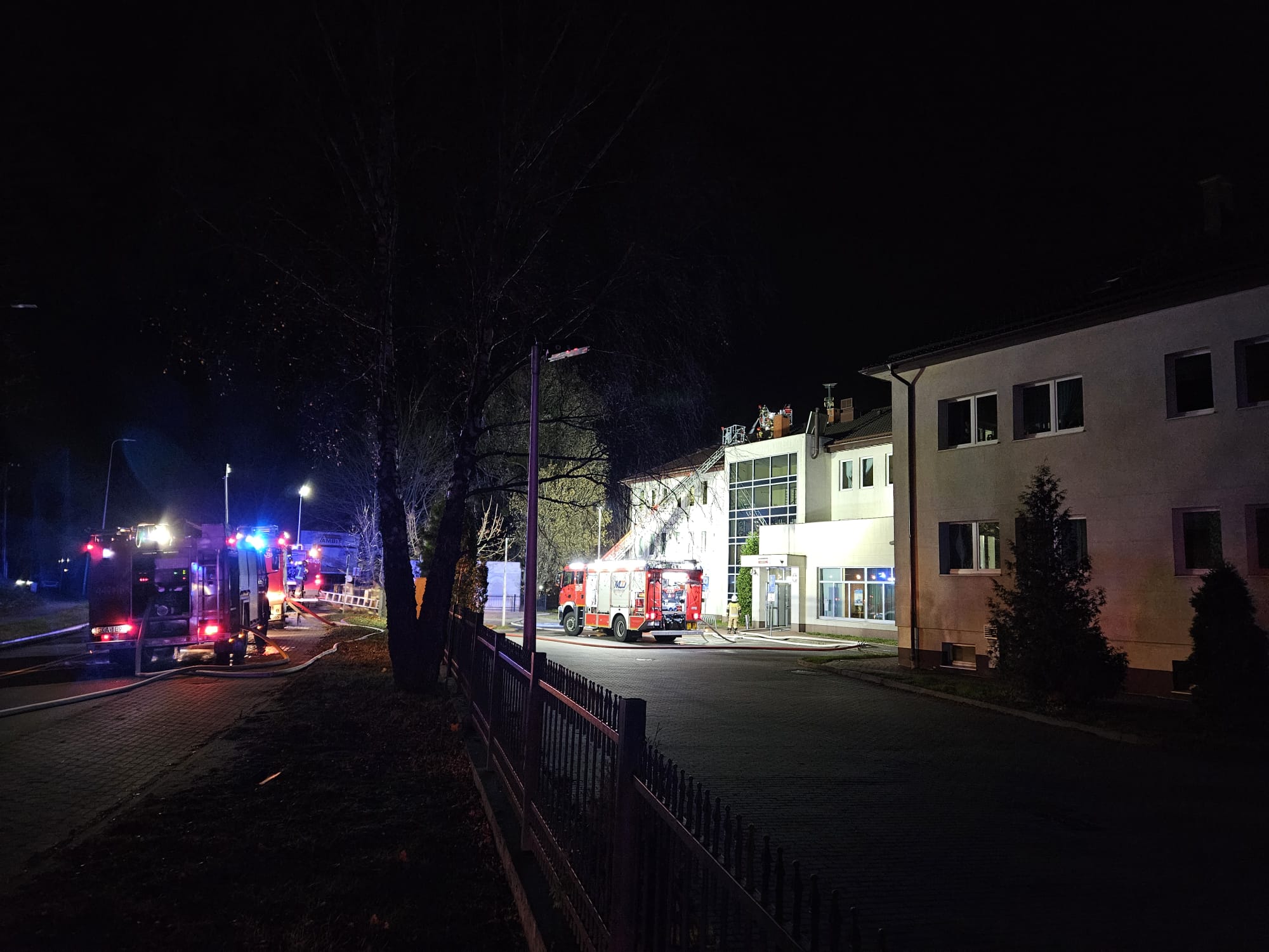 03.11.2024 r. o godz. 3:34 do Stanowiska Kierowania Komendanta Powiatowego Państwowej Straży Pożarnej w Kartuzach wpłynęło zgłoszenie o pożarze na terenie Urzędu Skarbowego w Kartuzach. Po przybyciu na miejsce pierwszych zastępów straży pożarnej zastano rozwinięty pożar, który obejmował elewację i dach budynku garażowego oraz elewację i część konstrukcji dachowej budynku głównego. Dzięki działaniom straży pożarnej zatrzymano dalszy rozwój pożaru. Uratowano biura znajdujące się w części murowanej obiektu, w tym archiwum. W głównym momencie działań na miejscu działało 16 zastępów straży pożarnej. Po zakończonych działaniach gaśniczych strażacy przystąpili do rozbiórki nadpalonych elementów konstrukcyjnych budynku, a następnie zabezpieczyli połać dachową. Działania całkowicie zakończyły się o godz. 10:41. Łącznie w działaniach uczestniczyło 19 zastępów Straży Pożarnej, Policja, Pogotowie Energetyczne oraz Zespół Ratownictwa Medycznego. Przyczyny pożaru ustala policja.