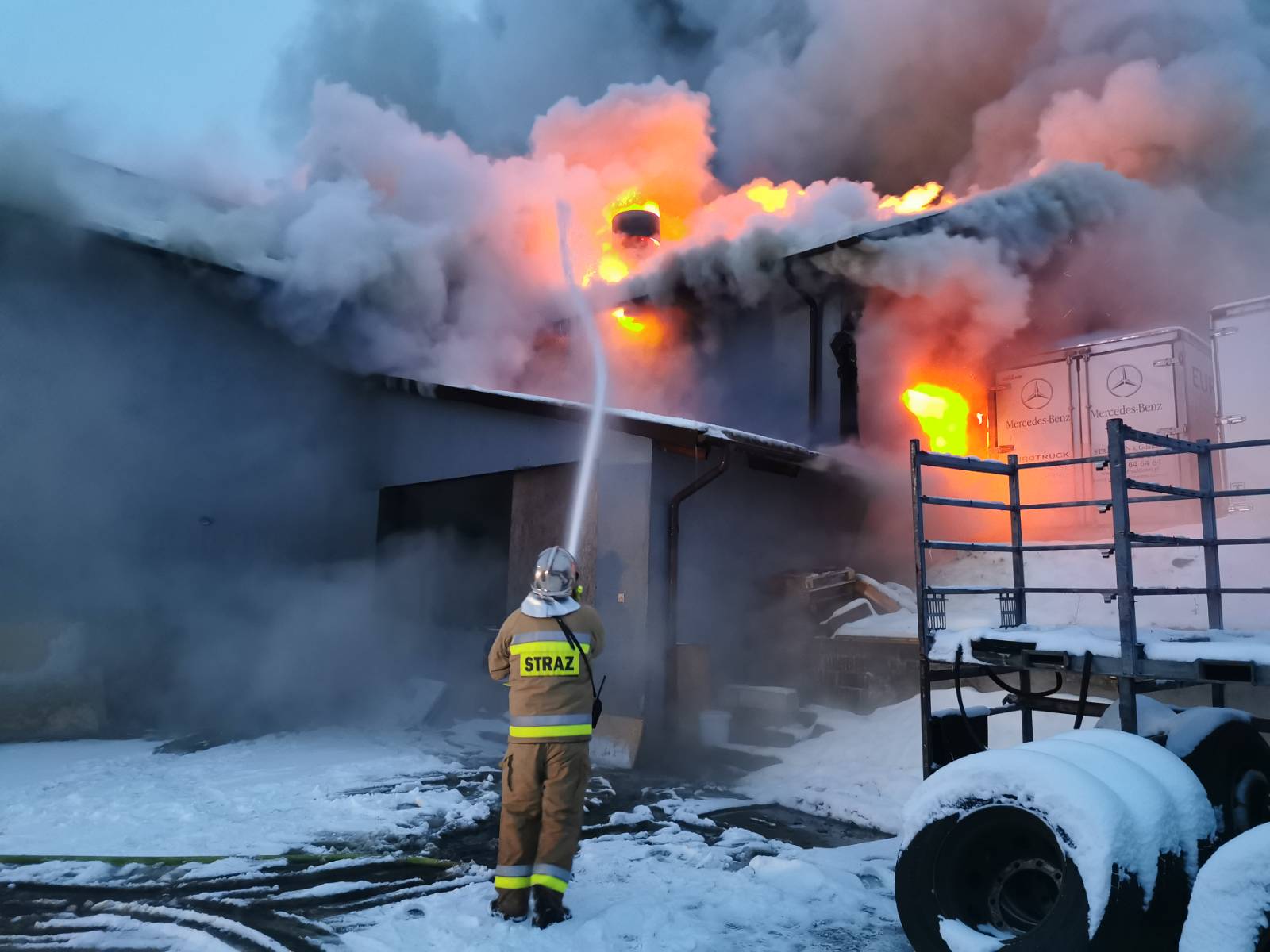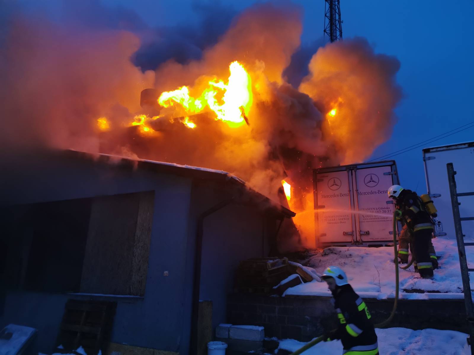 28 grudnia 2021 roku o godzinie 15:29 do stanowiska kierowania komendanta powiatowego PSP w Kartuzach wpłynęło zgłoszenie o pożarze budynku warsztatowo-magazynowego w miejscowości Dzierżążno.