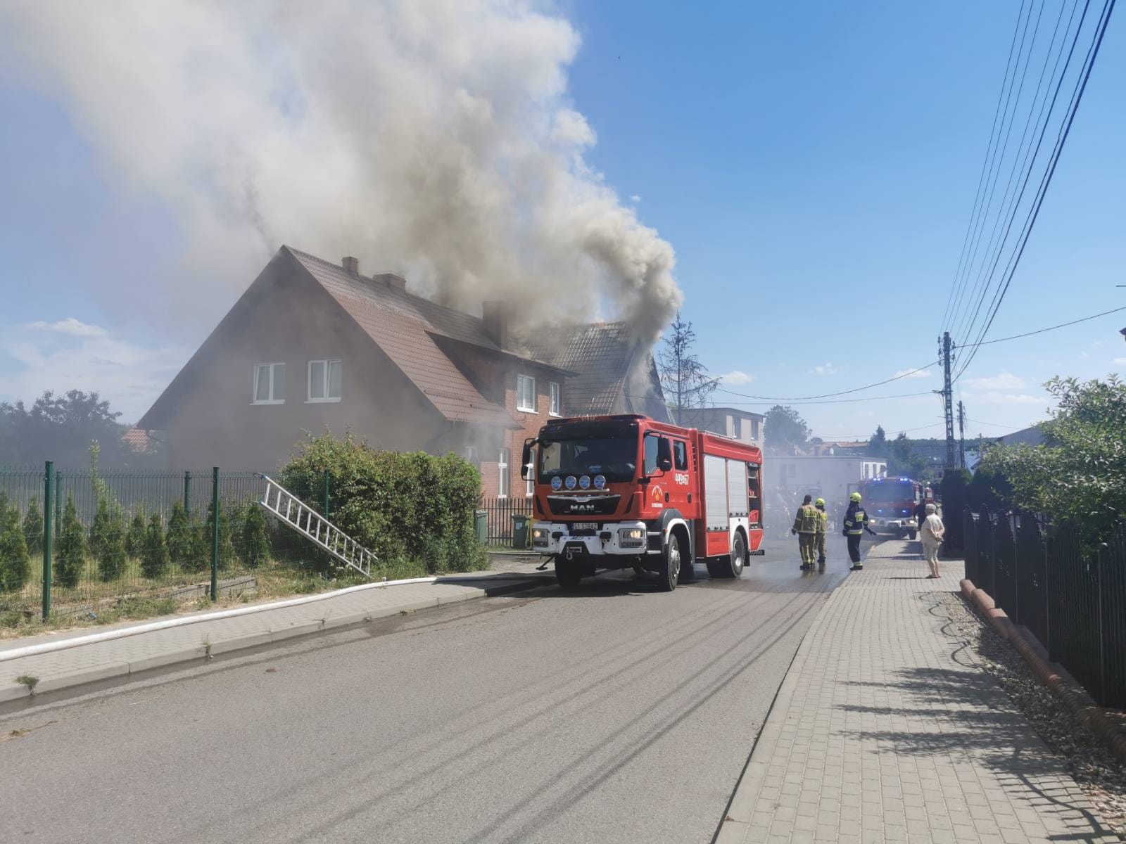Po przybyciu na miejsce pierwszych zastępów stwierdzono, że pożarem objęta była część budynku wielorodzinnego wraz z dachem. Wszyscy mieszkańcy opuścili obiekt przed przybyciem jednostek ochrony przeciwpożarowej. Łącznie w budynku mieszkały 22 osoby.