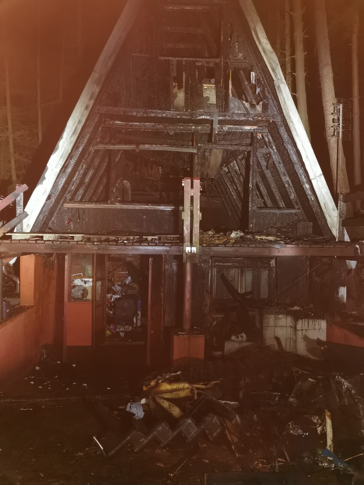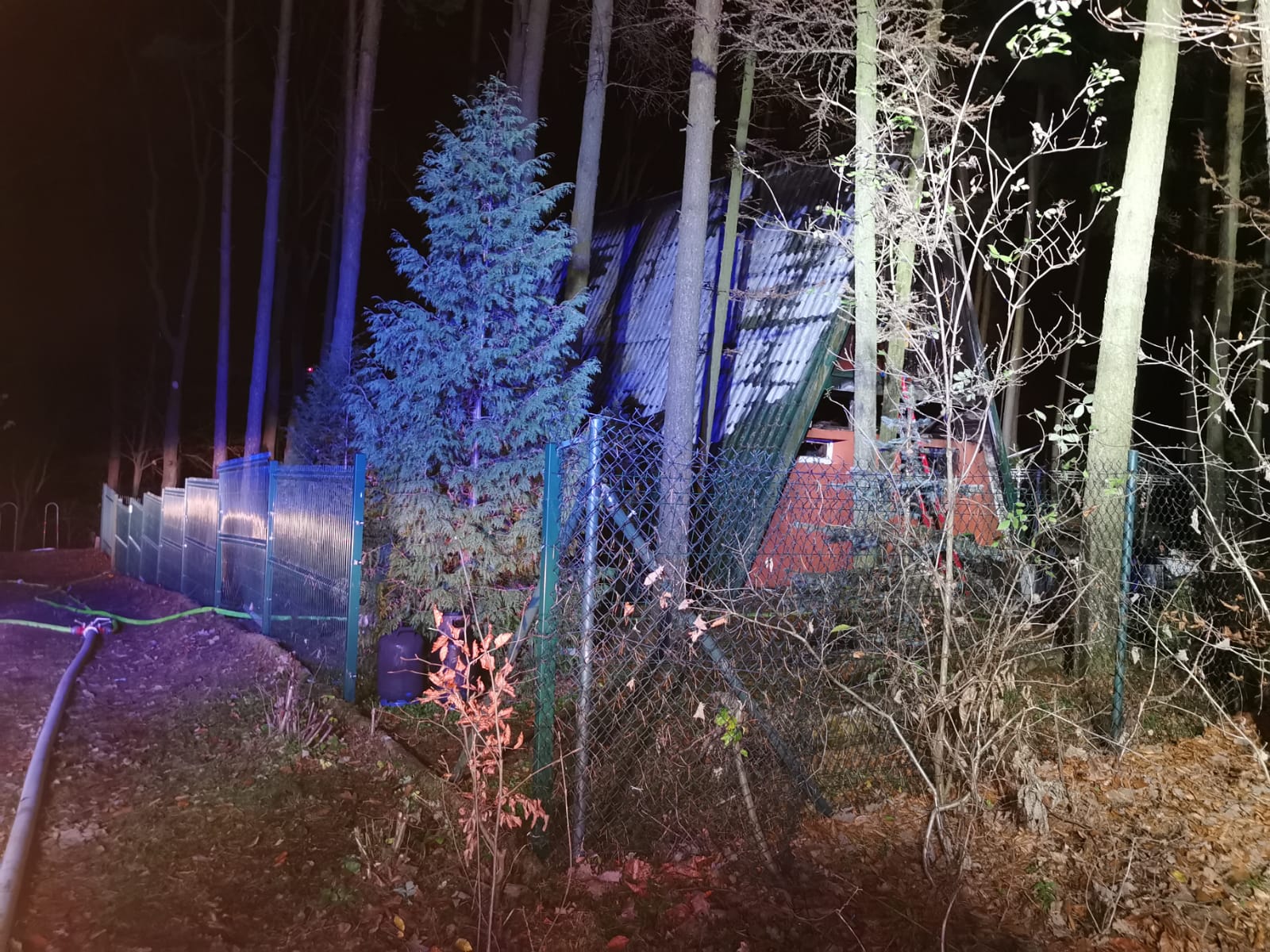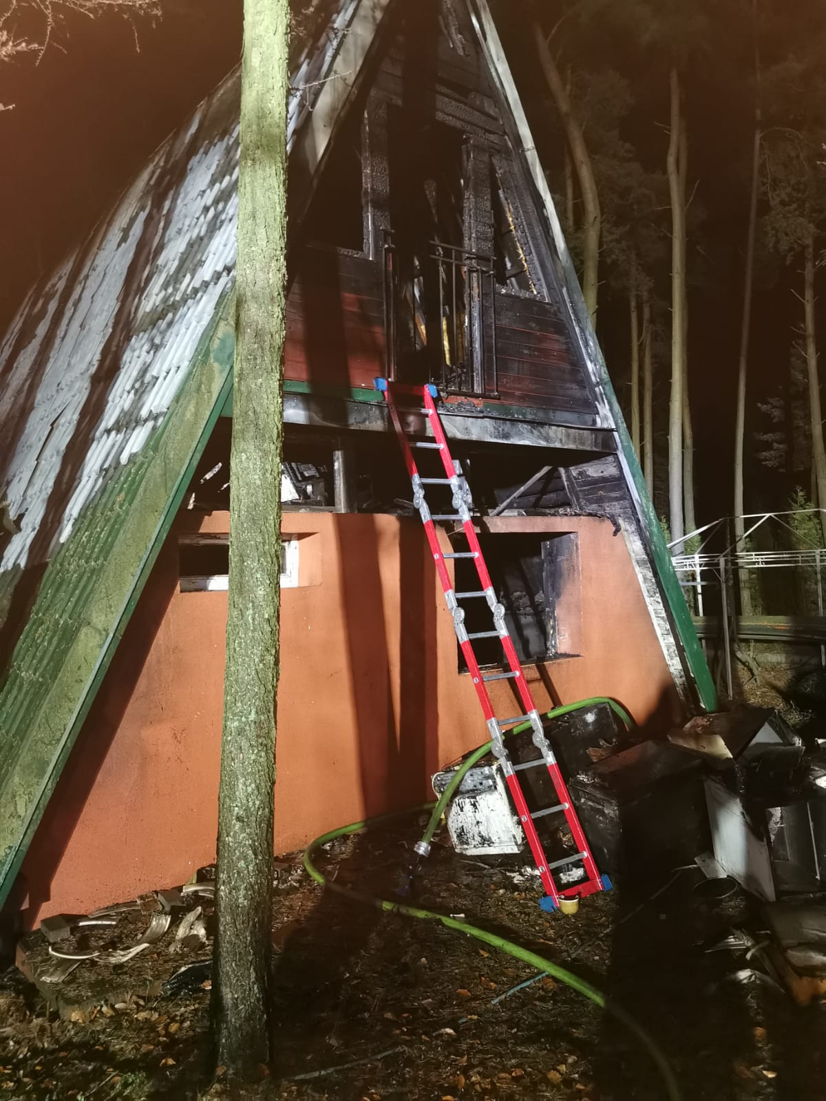 Po przybyciu na miejsce zdarzenia pierwszych zastępów stwierdzono, że pali się domek letniskowy, pożarem objęta cała kubatura obiektu, płomienie wydostawały się na zewnątrz budynku. Z uzyskanych podczas rozpoznania informacji wynikało, że wewnątrz, w przestrzeni objętej pożarem, może znajdować się jedna osoba.