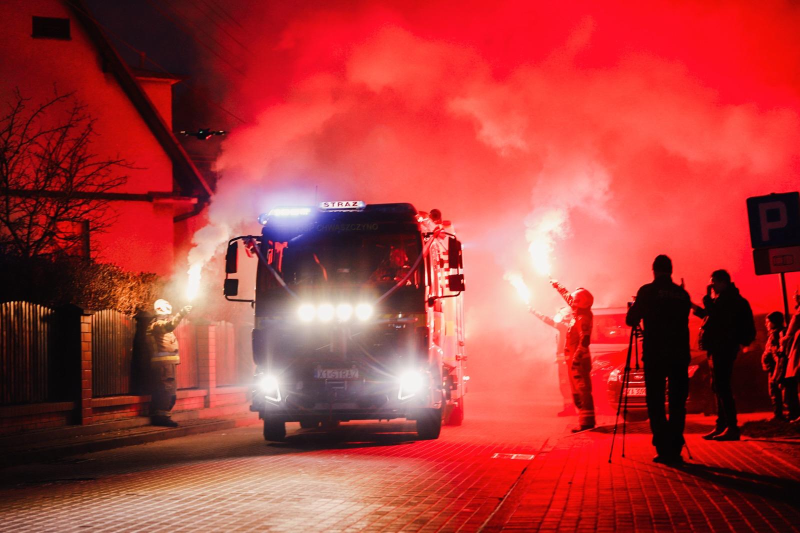 W dniu 11 listopada 2025 druhny i druhowie z Ochotniczej Straży Pożarnej w Chwaszczynie nie tylko uczcili 107. rocznicę Odzyskania Niepodległości, ale również świętowali wyjątkowe wydarzenie - przywitanie nowego samochodu ratowniczo-gaśniczego GBA.