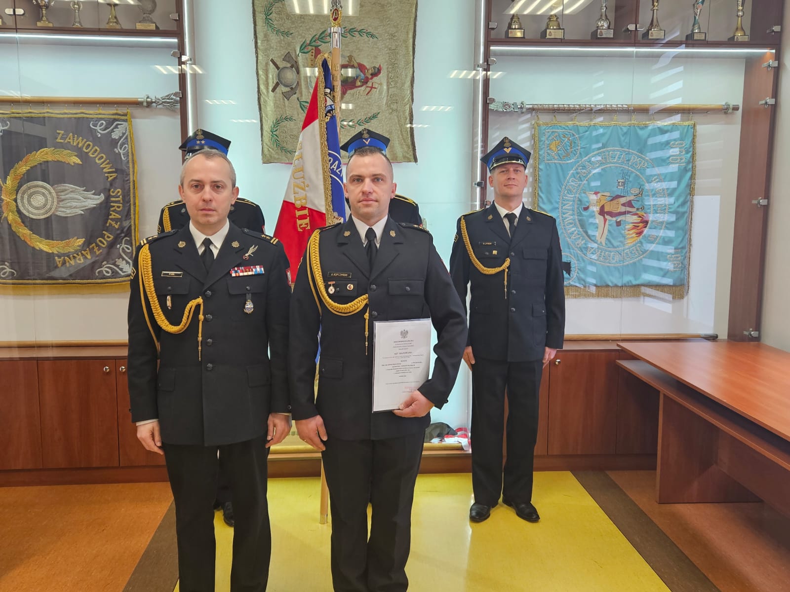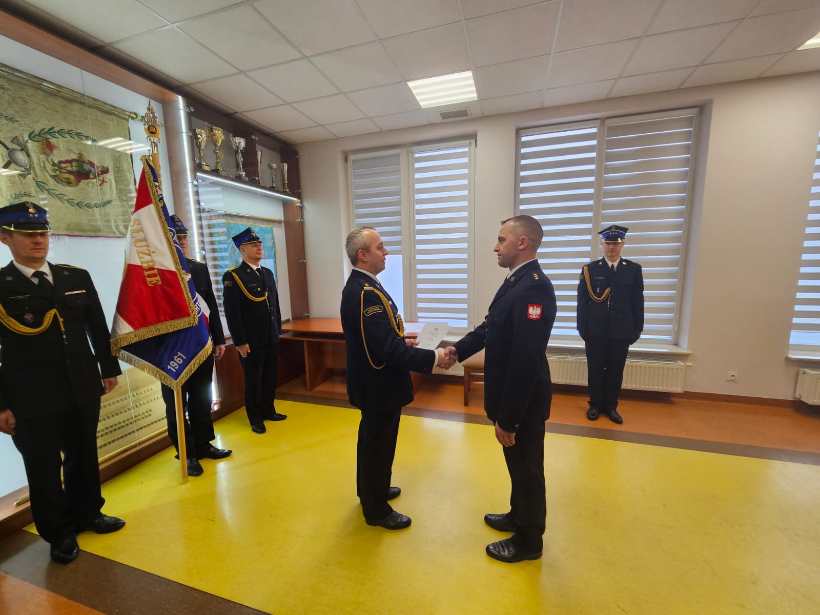 Uroczystość była również okazją do wręczenia aktu mianowania na wyższe stanowisko służbowe. Kpt. Adrian Kopczyński został mianowany na stanowisko Kierownika Sekcji w Sekcji ds. Przeciwdziałania Zagrożeniom w Komendzie Powiatowej Państwowej Straży Pożarnej w Kartuzach.
