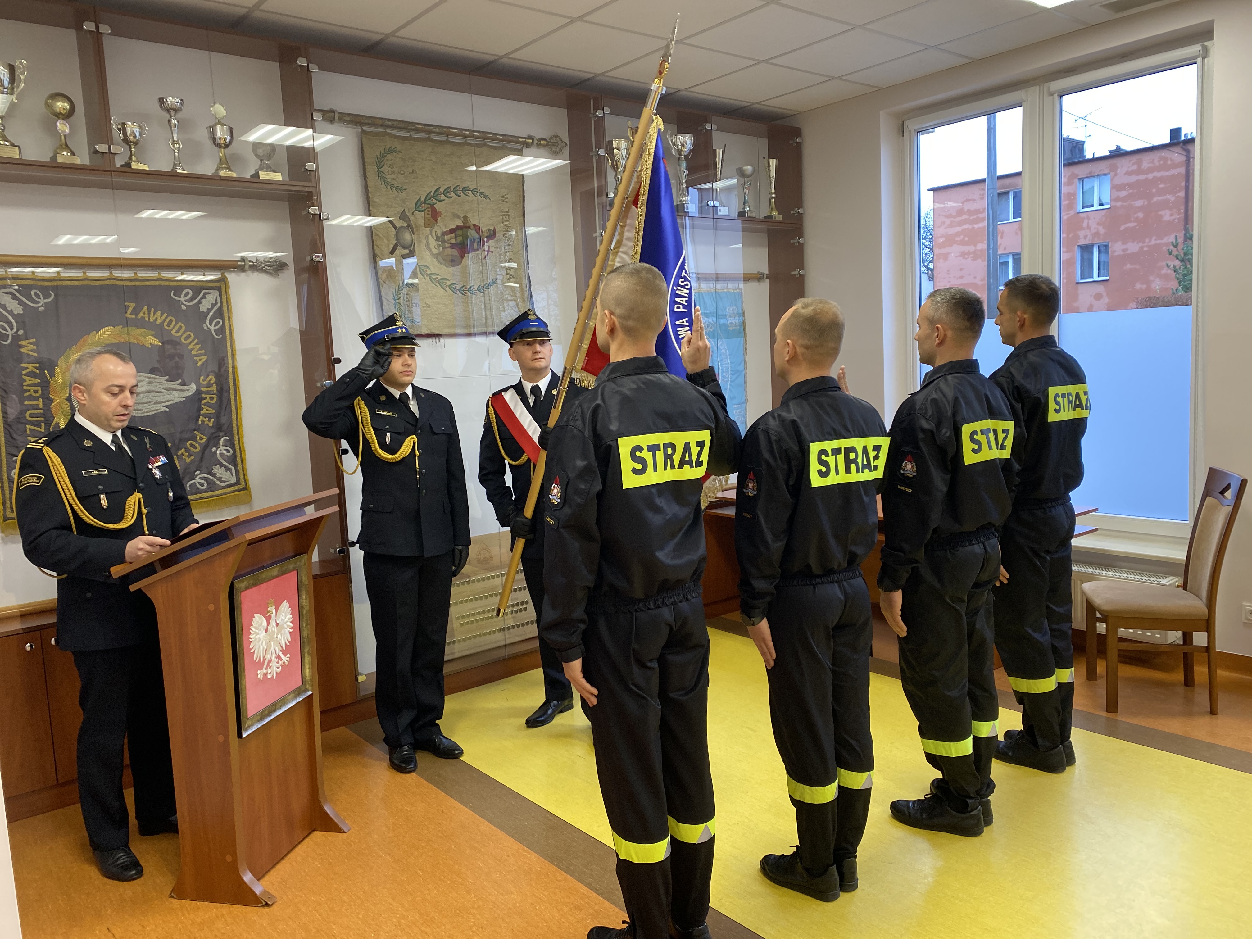 Rotę ślubowania przyjął bryg. Paweł Gil, Komendant Powiatowy PSP w Kartuzach, który wręczając akty ślubowania życzył w imieniu wszystkich funkcjonariuszy i pracowników Komendy Powiatowej wielu sukcesów wstępującym w szeregi Państwowej Straży Pożarnej.