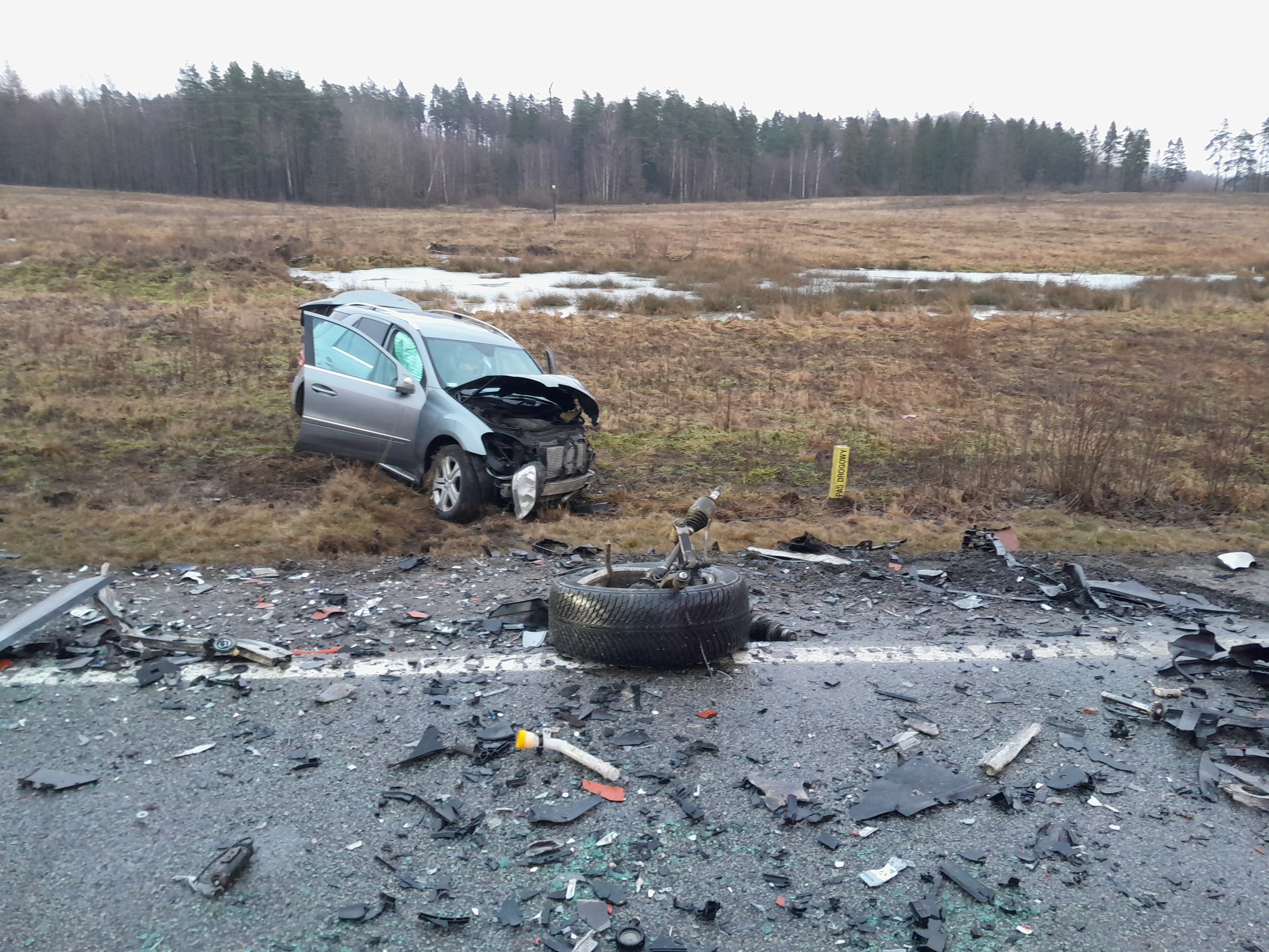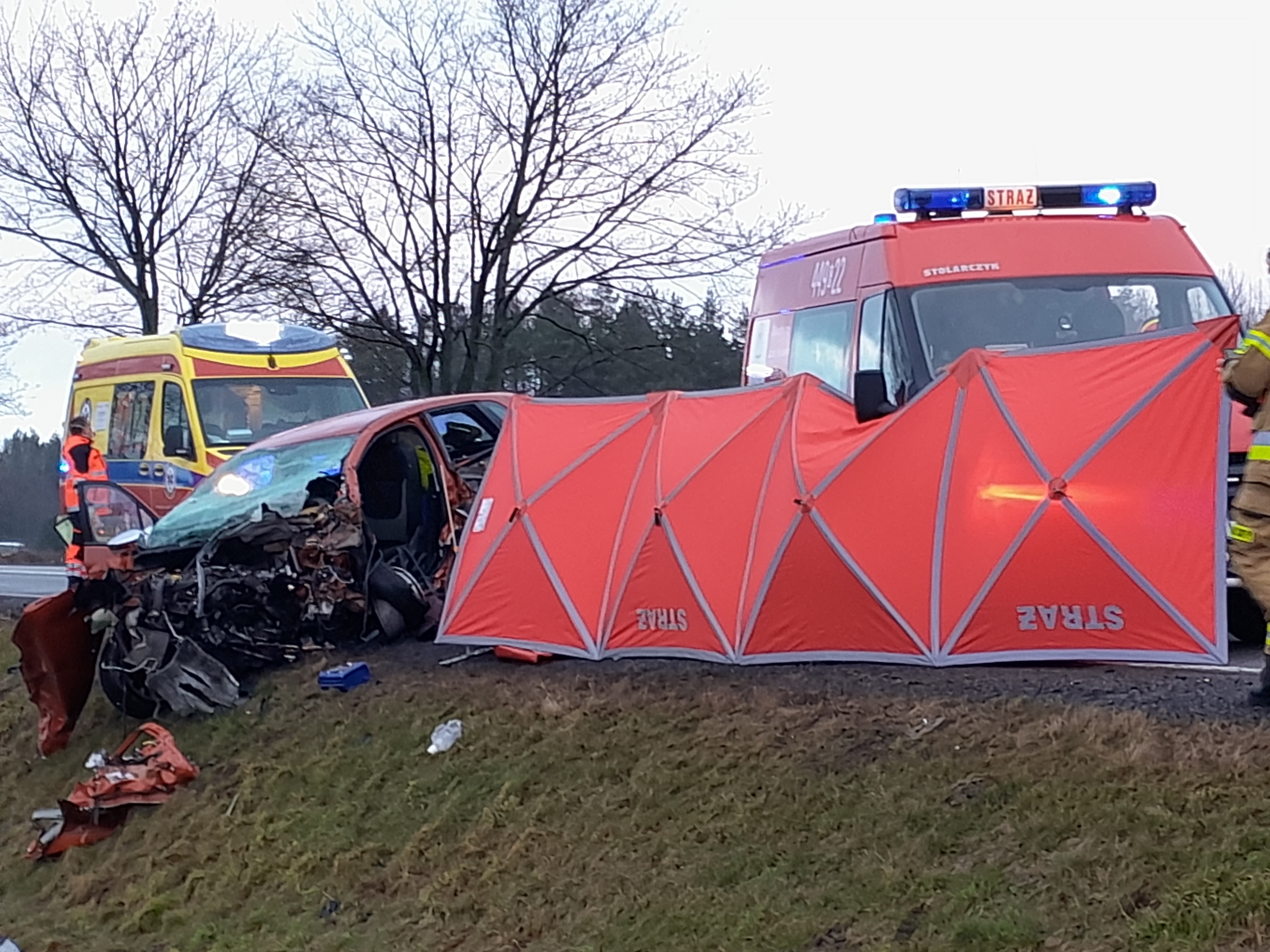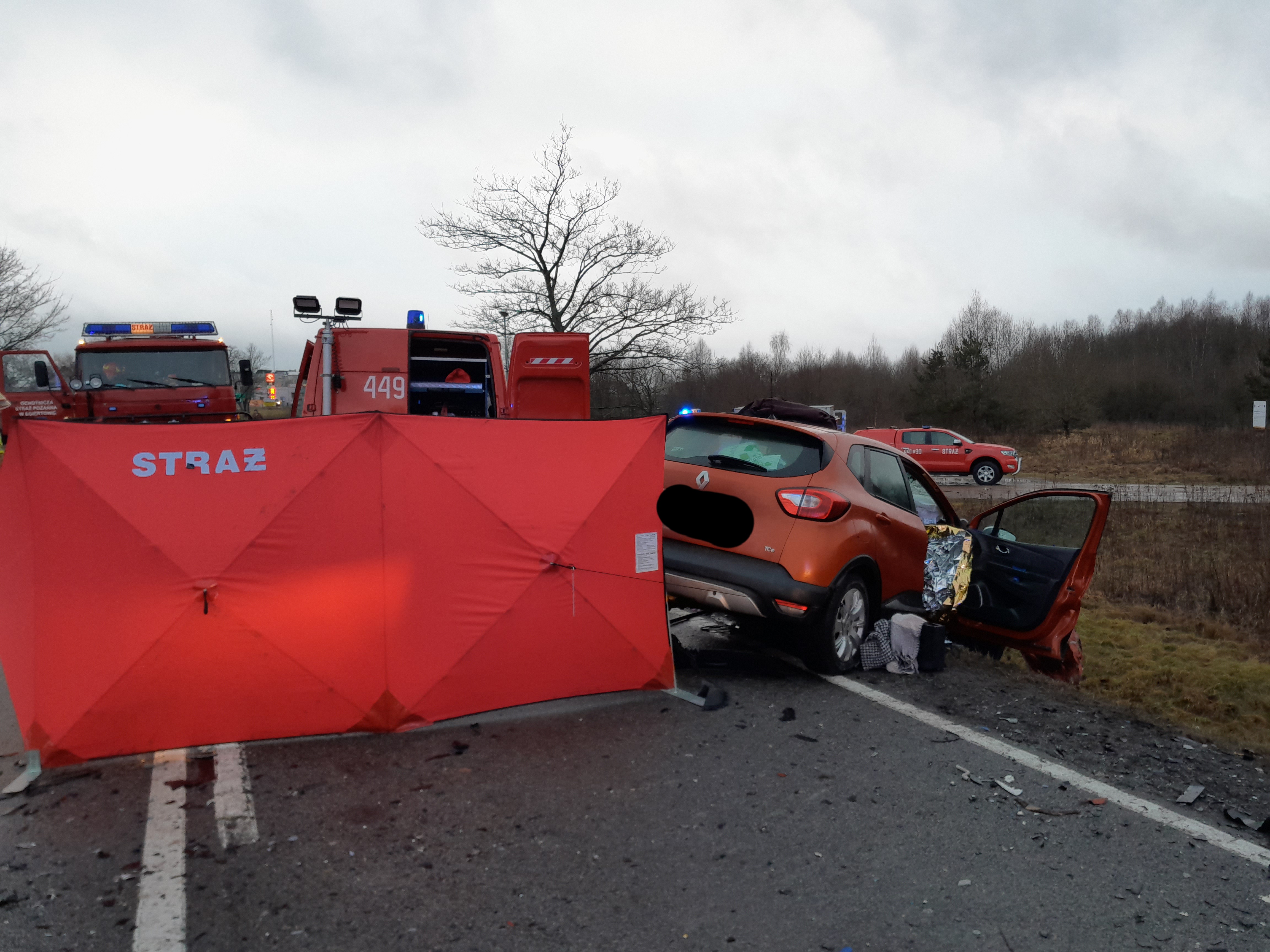 Po przybyciu na miejsce pierwszych zastępów stwierdzono, że doszło do czołowego zderzenia dwóch samochodów osobowych. Jeden z samochodów zatrzymał się na skraju jezdni. Wewnątrz znajdowały dwie osoby, nieprzytomna kobieta bez zachowanych czynności życiowych, która kierowała pojazdem oraz przytomna pasażerka z urazem kończyny dolnej i górnej. Drugi z samochodów, którym podróżowała jedna osoba, znajdował się poza jezdnią. Kierowca znajdował się poza pojazdem bez widocznych obrażeń.
