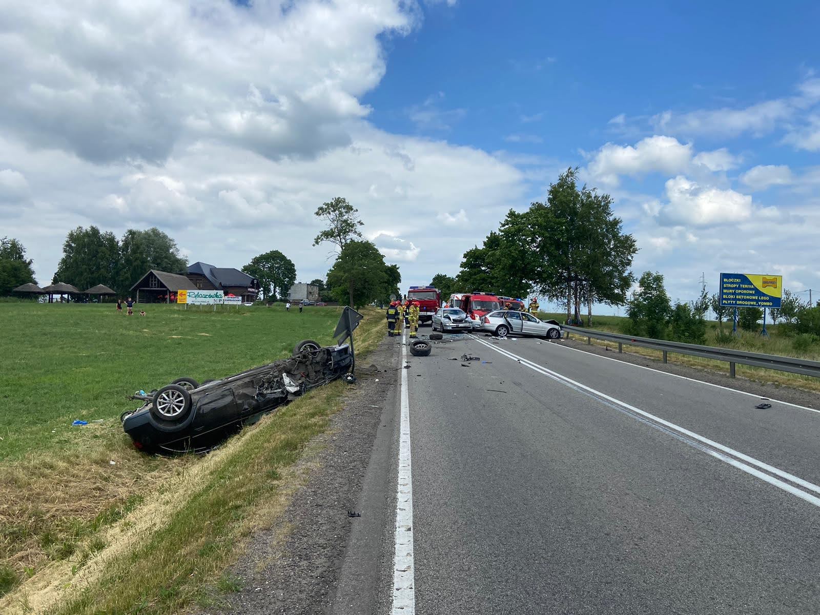 Drugi wypadek miał miejsce o godzinie 13:54. W zdarzeniu brały udział trzy samochody, którymi łącznie podróżowało siedem osób. Dwa pojazdy znajdowały się na jezdni, natomiast trzeci po dachowaniu znajdował się poza jezdnią. W jednym z pojazdów znajdował się mężczyzna z zakleszczonymi nogami. Pozostali uczestnicy zdarzenia samodzielnie opuścili pojazdy.