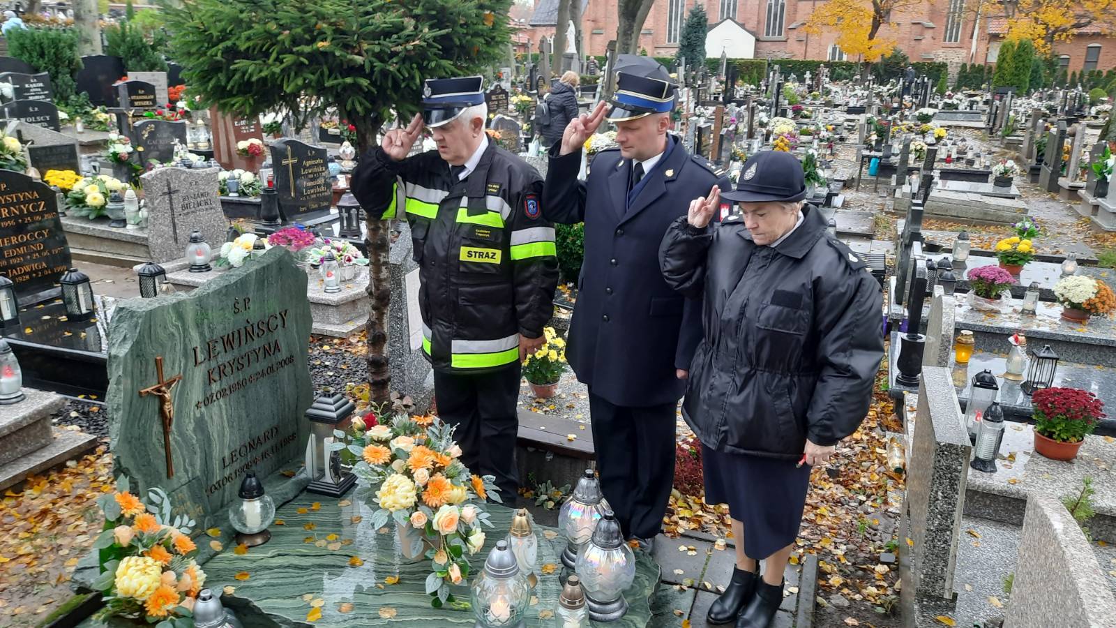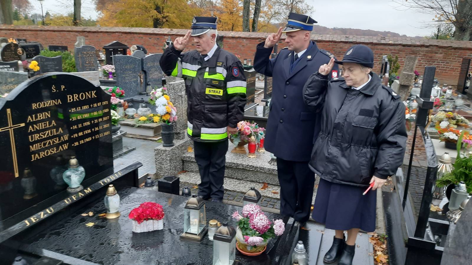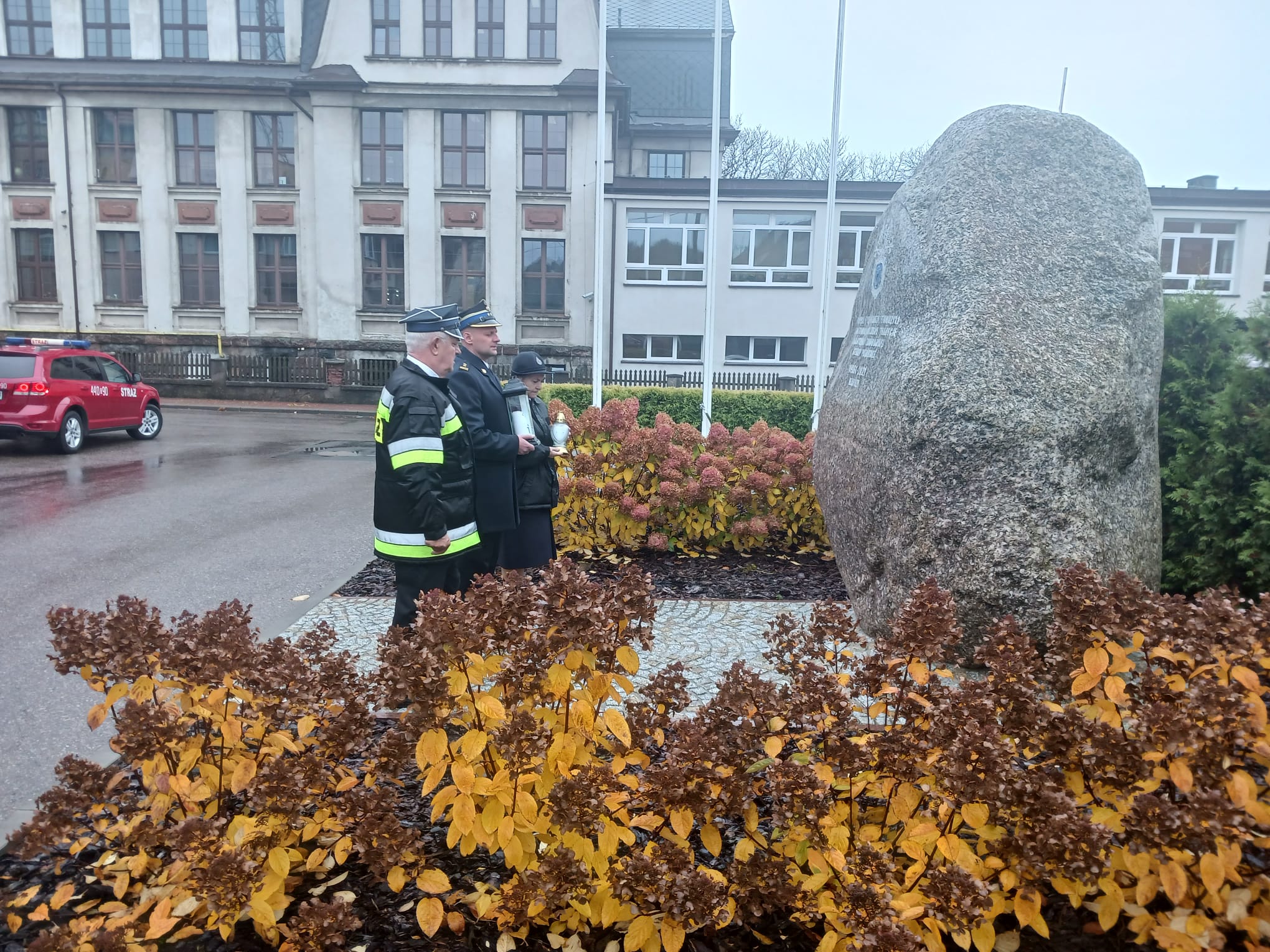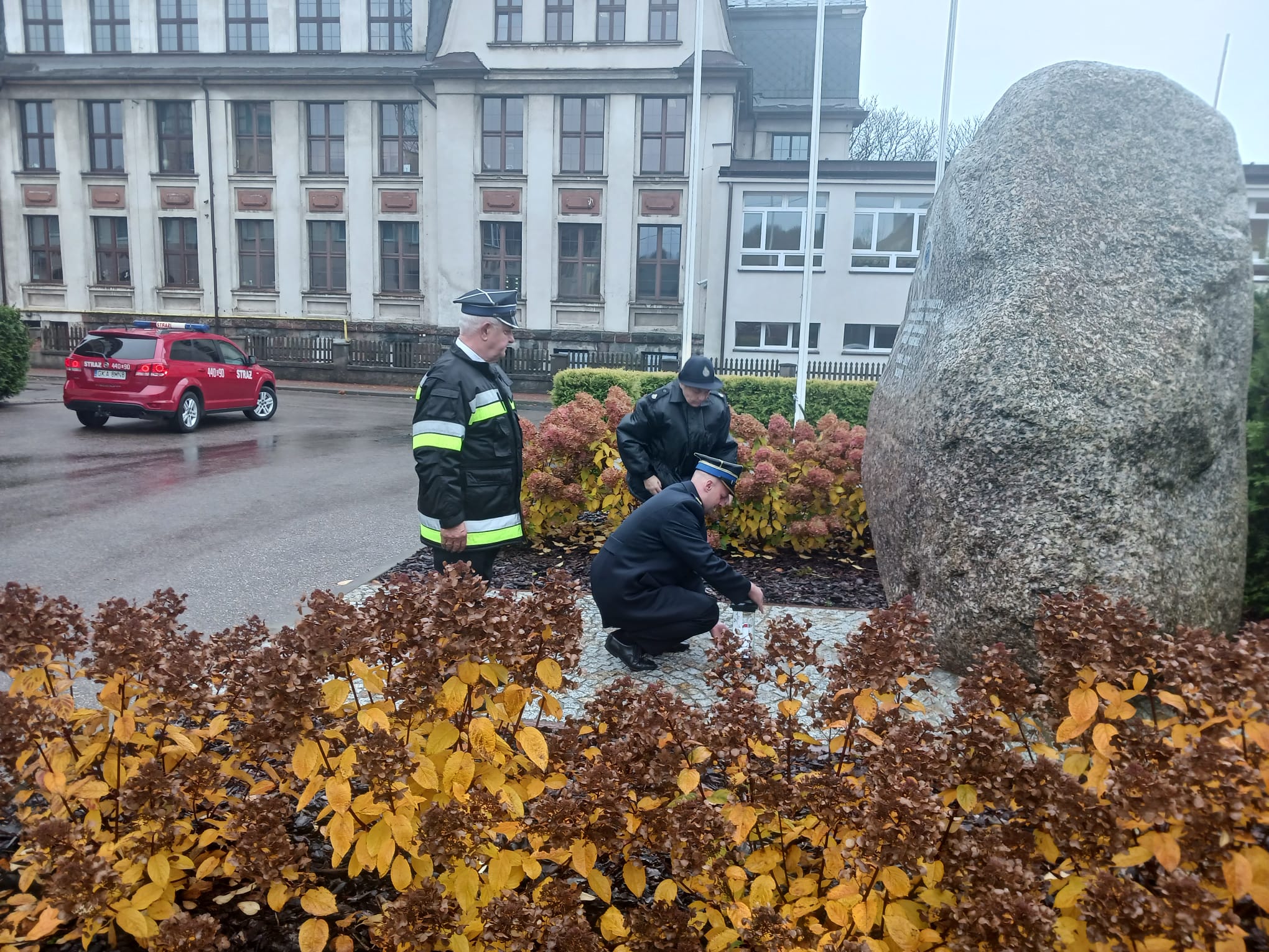 Delegacja w składzie bryg. Leszek Formela, Zastępca Komendanta Powiatowego PSP w Kartuzach, st. ogn. w stan. spocz. Halina Szymichowska z Koła Emerytów i Rencistów Pożarnictwa RP przy KP PSP w Kartuzach oraz druh Kazimierz Trepczyk, Prezes OSP w Kartuzach zapalili znicze w miejscach pamięci i przy strażackich grobach.
