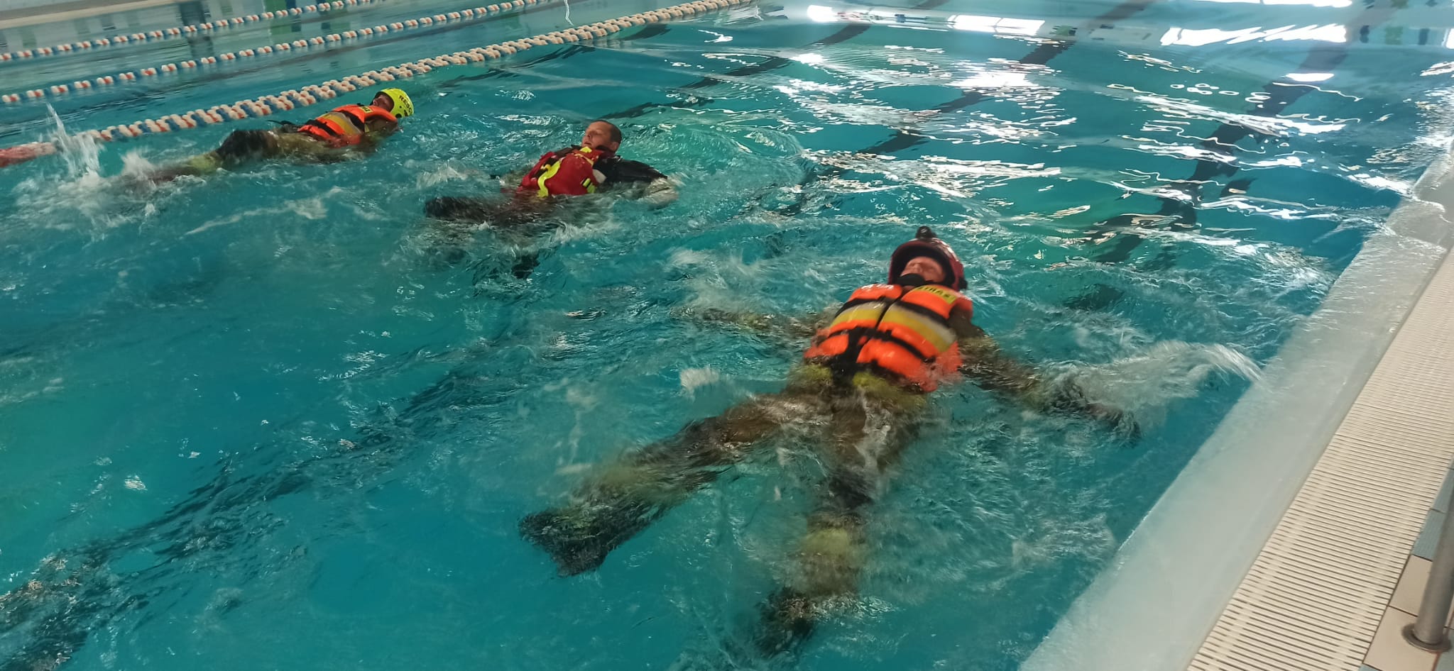 Głównym celem zajęć było doskonalenie umiejętności samoratowania w sytuacjach nagłego wpadnięcia do wody w środkach ochrony indywidualnej.