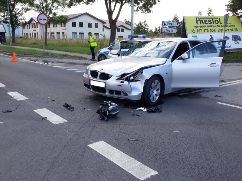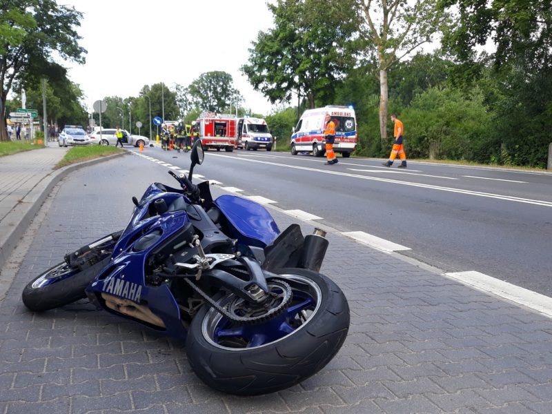 Po przybyciu na miejsce pierwszych zastępów stwierdzono, że doszło do zderzenia motocykla z samochodem osobowym. Kierujący motocyklem mężczyzna w stanie nieprzytomnym, bez czynności życiowych, znajdował się na jezdni. Działania straży pożarnej polegały na zabezpieczeniu miejsca zdarzenia i udzieleniu kwalifikowanej pierwszej pomocy osobie poszkodowanej. Niestety pomimo prowadzonej przez ok. 40 minut resuscytacji nie udało się uratować motocyklisty. W trwających 4 godziny działaniach uczestniczyły 6 zastępów straży pożarnej, 2 Zespoły Ratownictwa Medycznego i Policja.