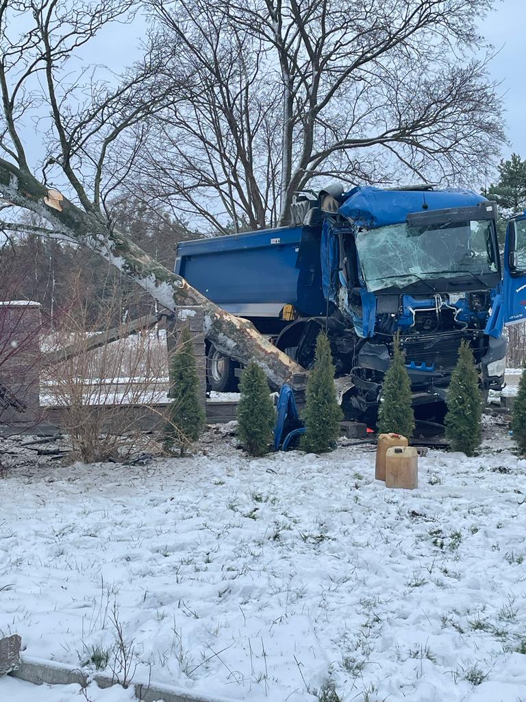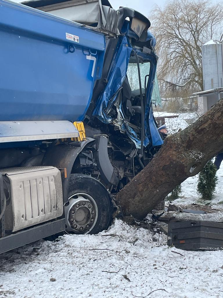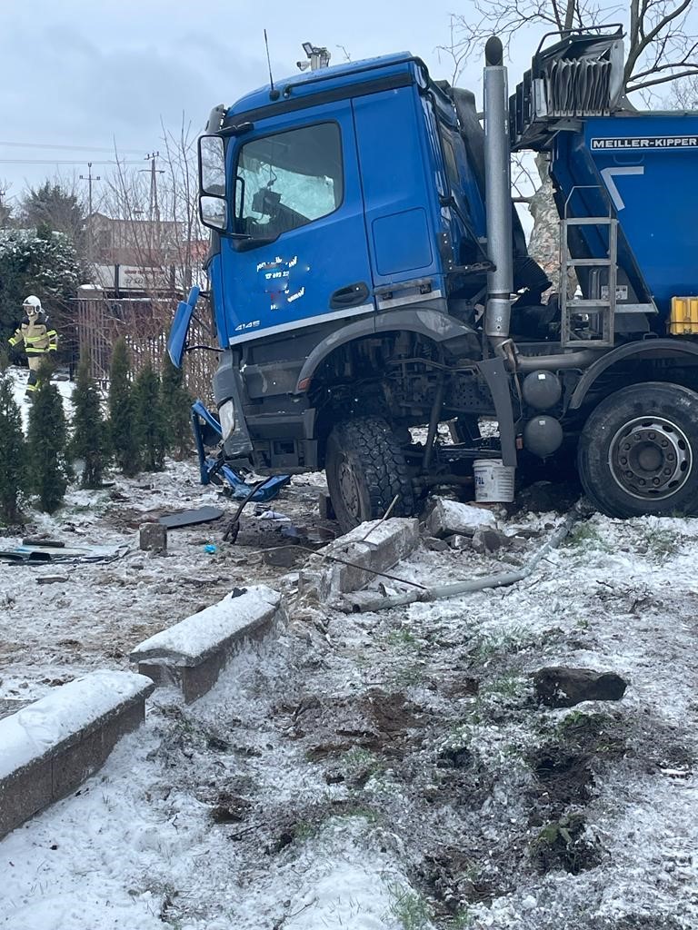 Wypadek samochodu ciężarowego w Skrzeszewie