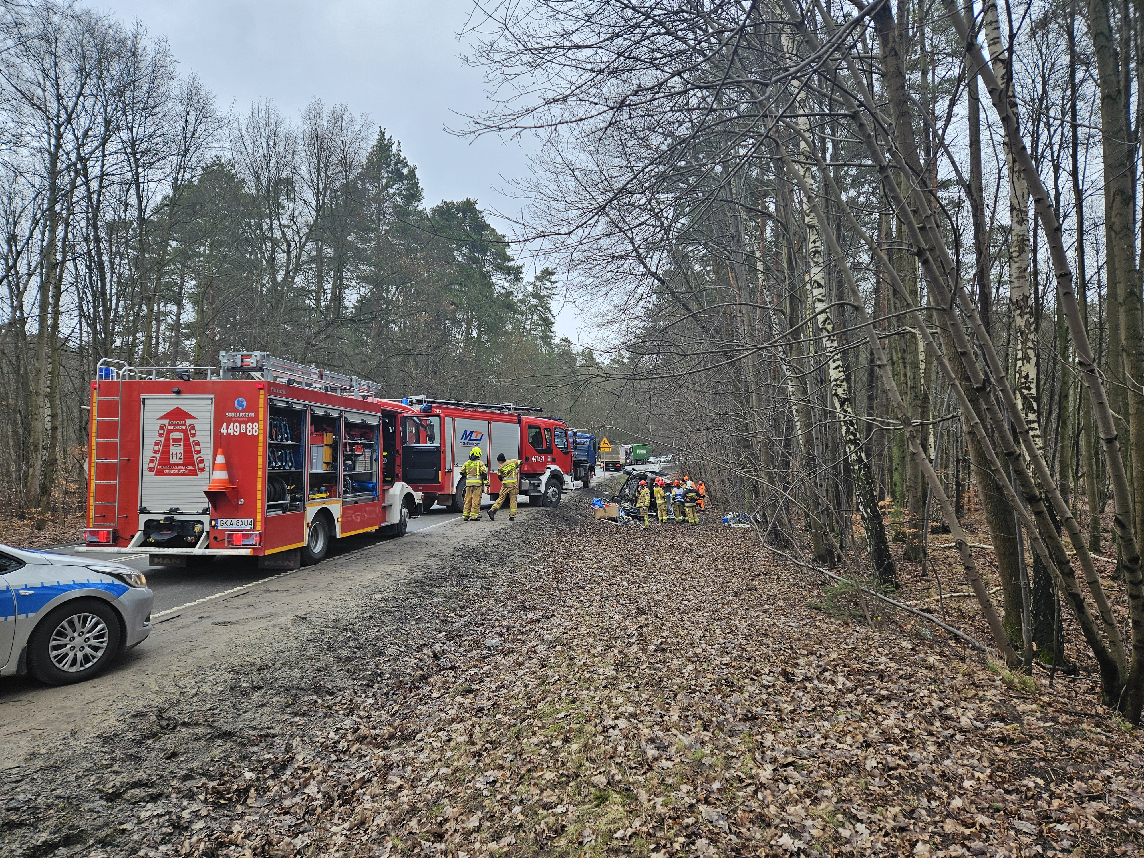 15 lutego 2024 r. roku o godzinie 13:24 do stanowiska kierowania komendanta powiatowego PSP w Kartuzach wpłynęło zgłoszenie o wypadku drogowym na drodze krajowej nr 7 w miejscowości Leźno.
