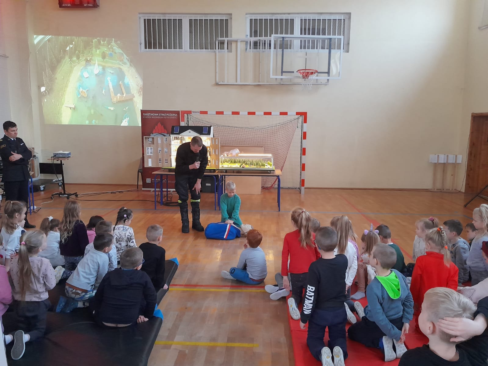 Podczas zajęć dzieci miały okazję zapoznać się z zagrożeniami pożarowymi a także innymi niebezpiecznymi zdarzeniami, do jakich może dojść w domu lub mieszkaniu, które zaprezentowano na Mobilnym Symulatorze Zagrożeń Pożarowych, zasadami bezpieczeństwa w ruchu drogowym oraz podstawami udzielania pierwszej pomocy w sytuacji nagłego zagrożenia życia.