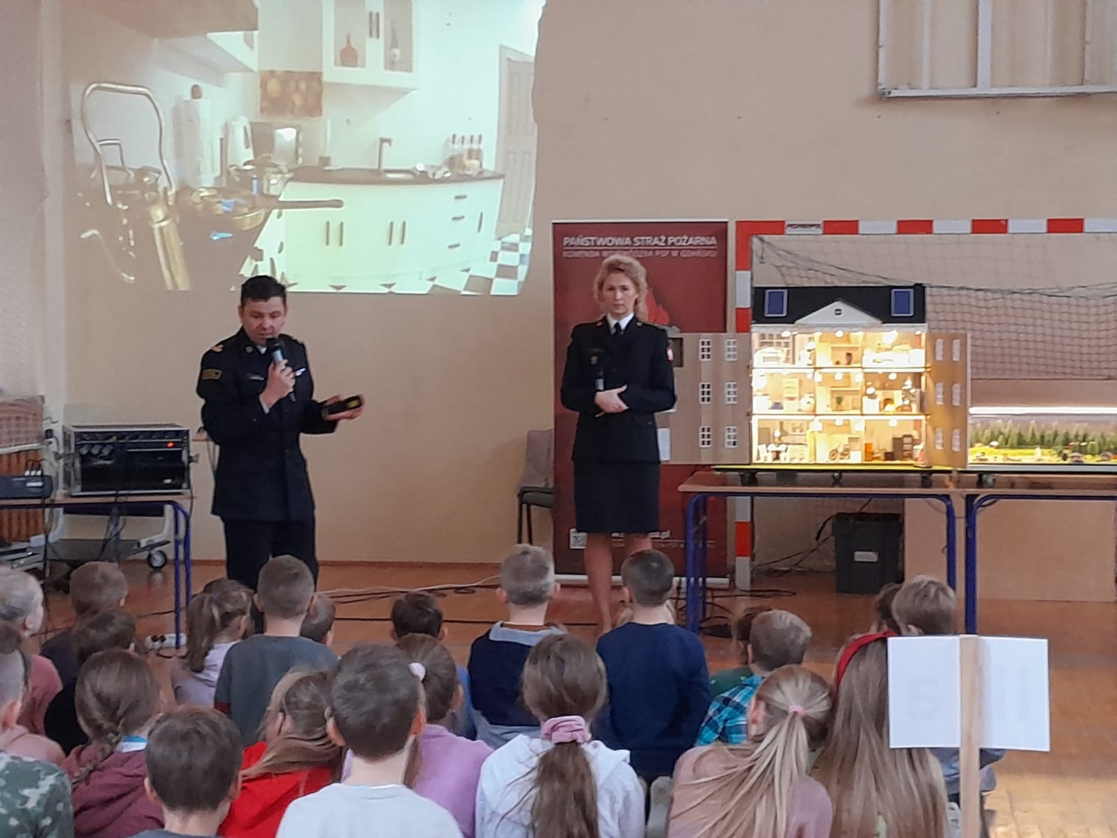 23 listopada 2022 roku w Szkole Podstawowej im. Jana Pawła II w Gowidlinie odbyły się zajęcia edukacyjno-profilaktyczne dla uczniów klas 0-IV, które wspólnie przeprowadzili funkcjonariusze PSP z Komendy Wojewódzkiej PSP w Gdańsku, funkcjonariusze Policji z Komisariatu Policji w Sierakowicach oraz strażacy z OSP Gowidlino.