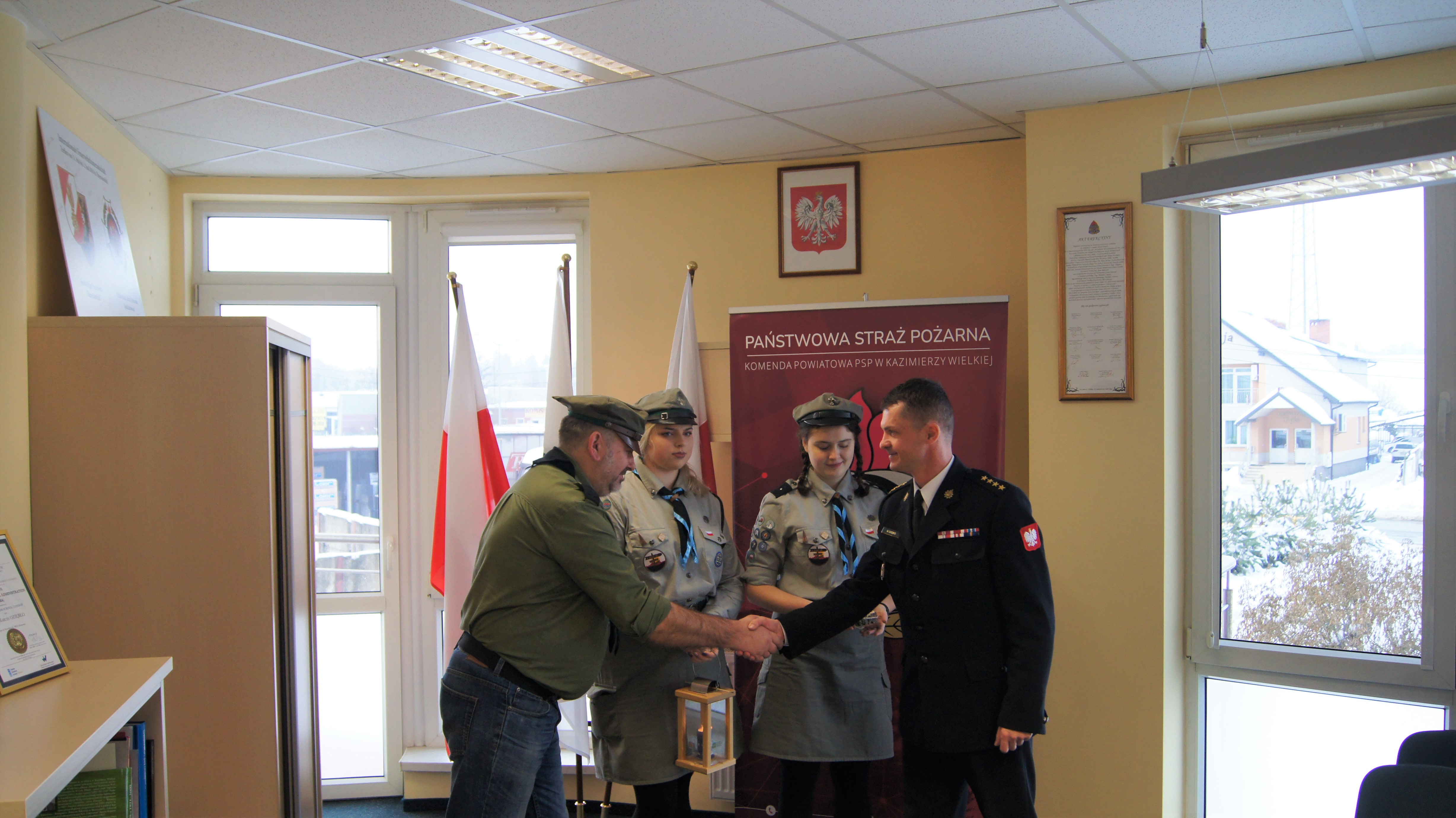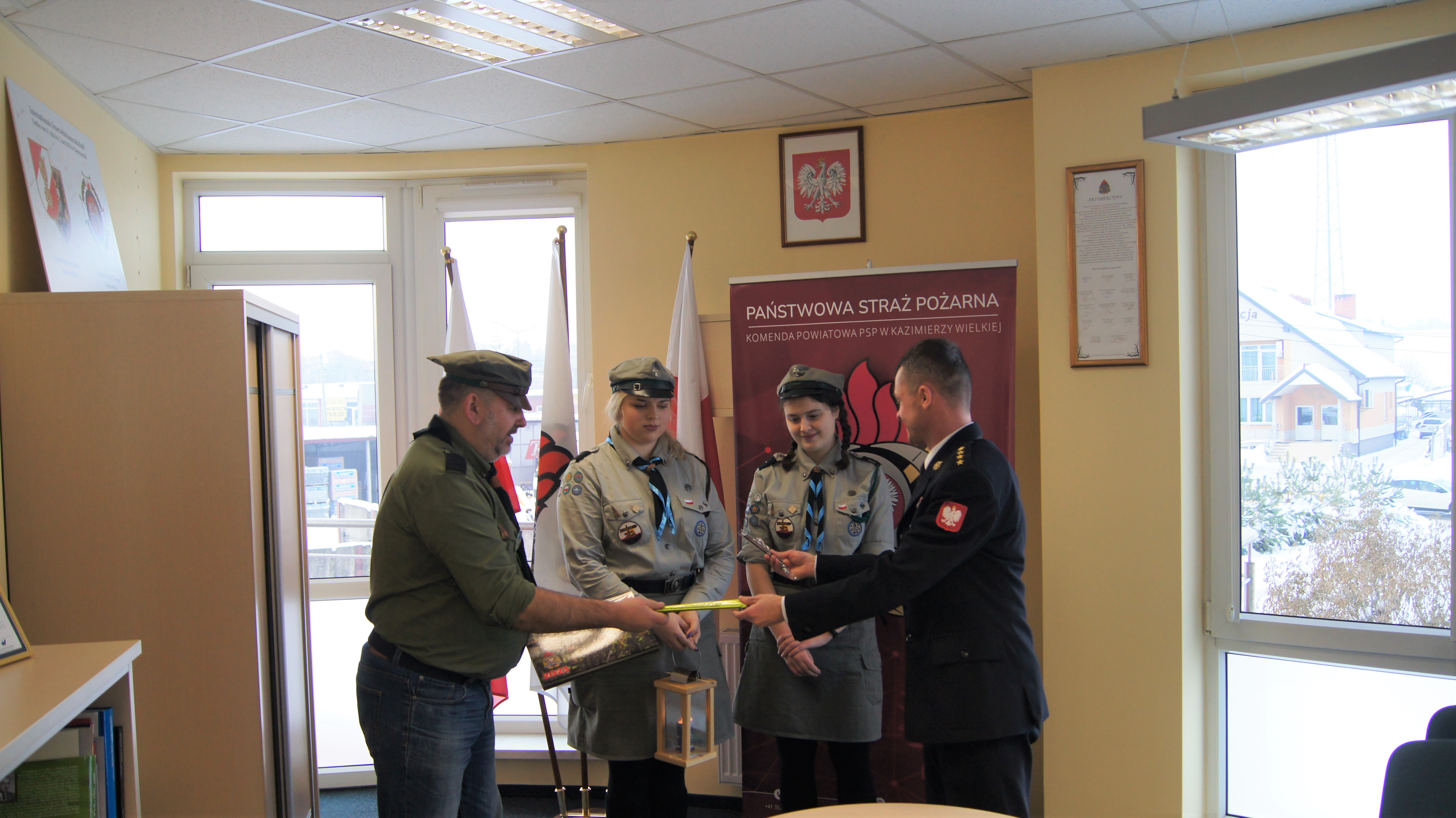 W środę-21 grudnia 2022 roku, kazimierską Komendę Powiatową Państwowej Straży Pożarnej odwiedzili harcerze z 28. Buskiej Drużyny Wielopoziomowej „Żywioły” działającej przy Kazimierskim Ośrodku Kultury, na czele z drużynowym phm Ireneuszem Górskim. Na ręce Komendanta Powiatowego st. kpt. Marcina Oziębło goście przekazali Płomień Betlejemskiego Światła Pokoju. Złożono również życzenia świąteczno – noworoczne, a Komendant podarował druhom egzemplarz strażackiego kalendarza na rok 2023 oraz gadżety mające wpływ na bezpieczeństwo.