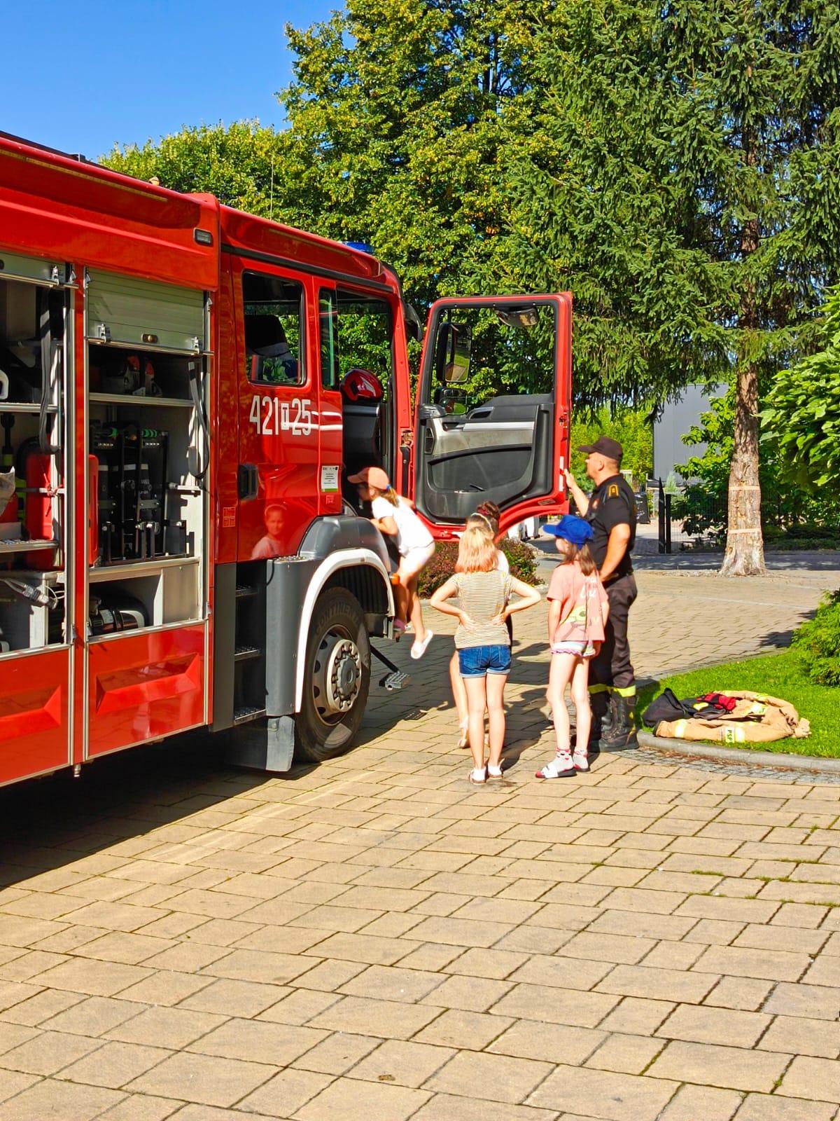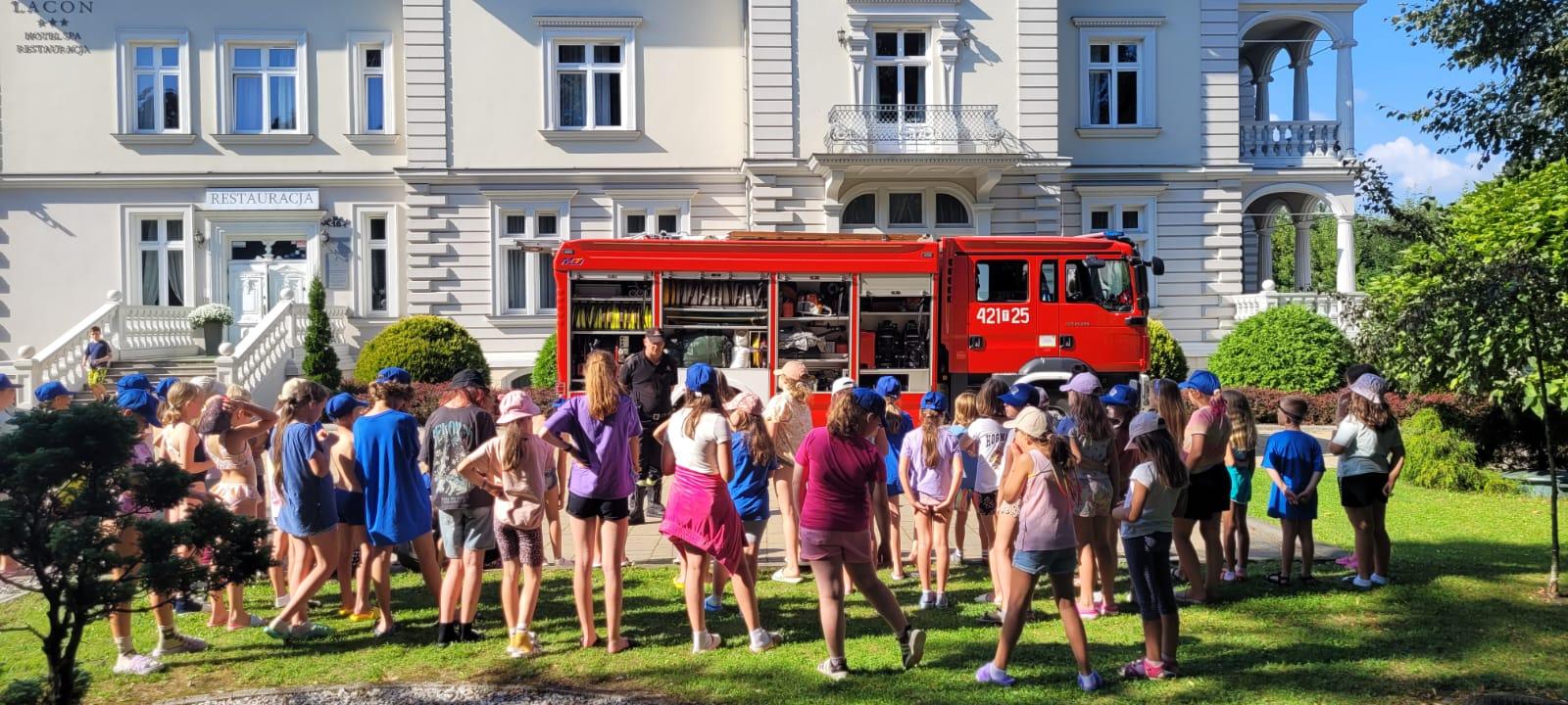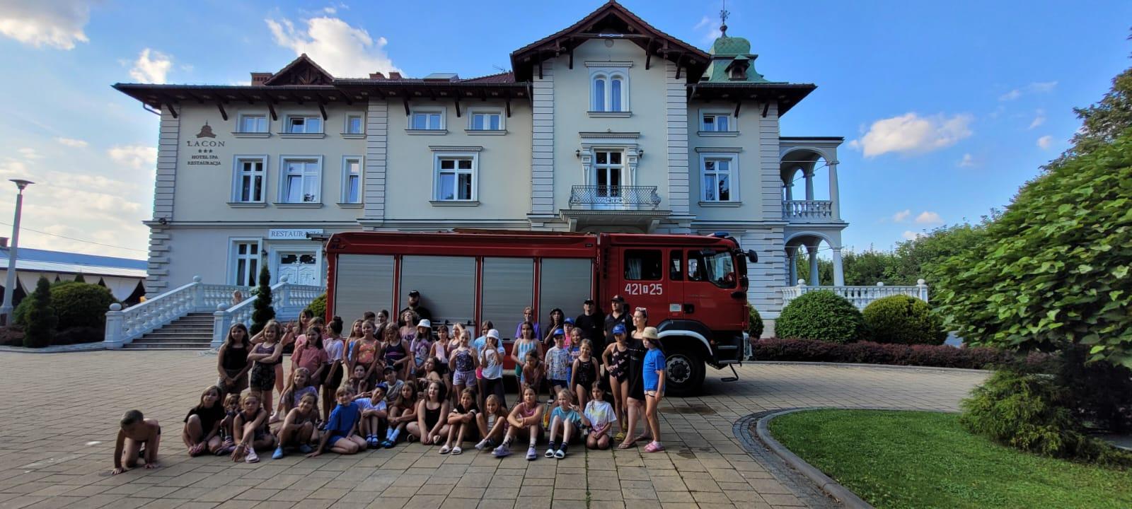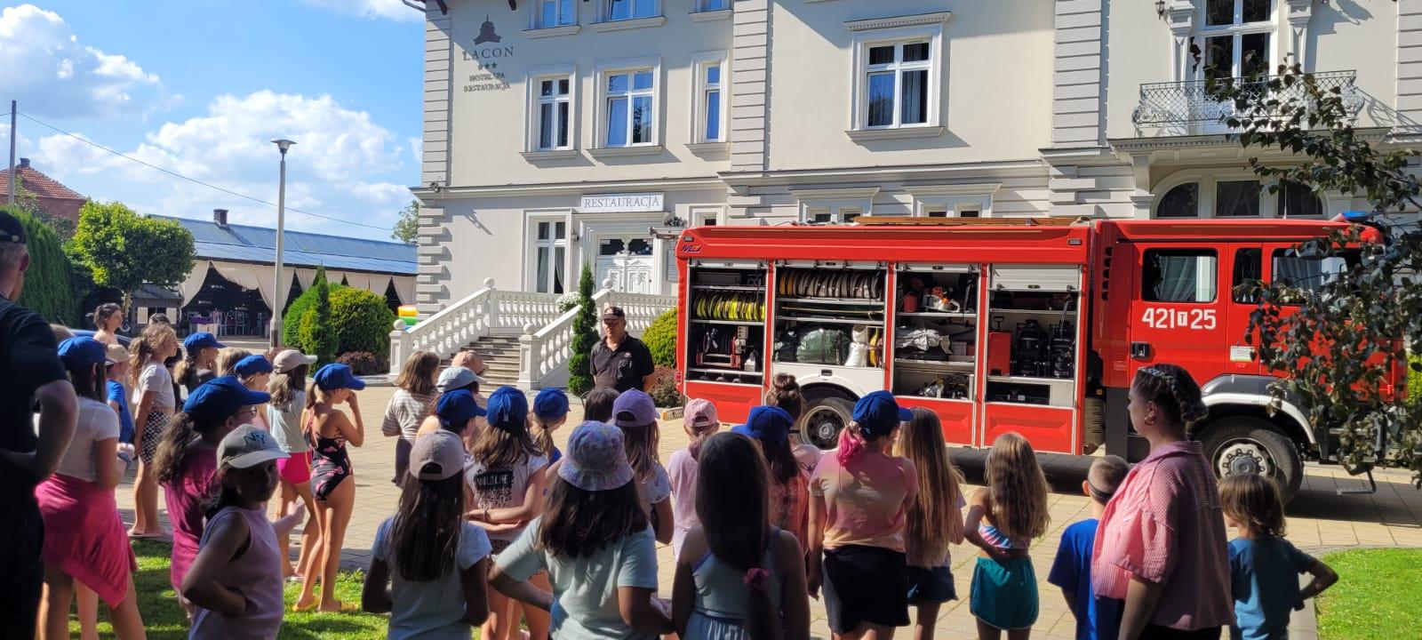 W dniu 09.08.2024 roku zastęp GCBA-Rt 5/32 z jednostki ratowniczo – gaśniczej w Kazimierzy Wielkiej udał się do Pałacu Lacon (hotel SPA i restauracja) w Kazimierzy Wielkiej w celu przeprowadzenia dla dzieci prelekcji dotyczącej bezpieczeństwa podczas wypoczynku w czasie wakacji. Składała się ona z pokazu sprzętu strażackiego połączonego z omówieniem zasad bezpieczeństwa dotyczących wypoczynku szczególnie nad wodą. Ogromnym zainteresowaniem cieszył się sprzęt będący na wyposażeniu ciężkiego samochodu ratowniczo - gaśniczego. W prelekcji uczestniczyło 50 dzieci odpoczywających na koloniach i 4 opiekunów.