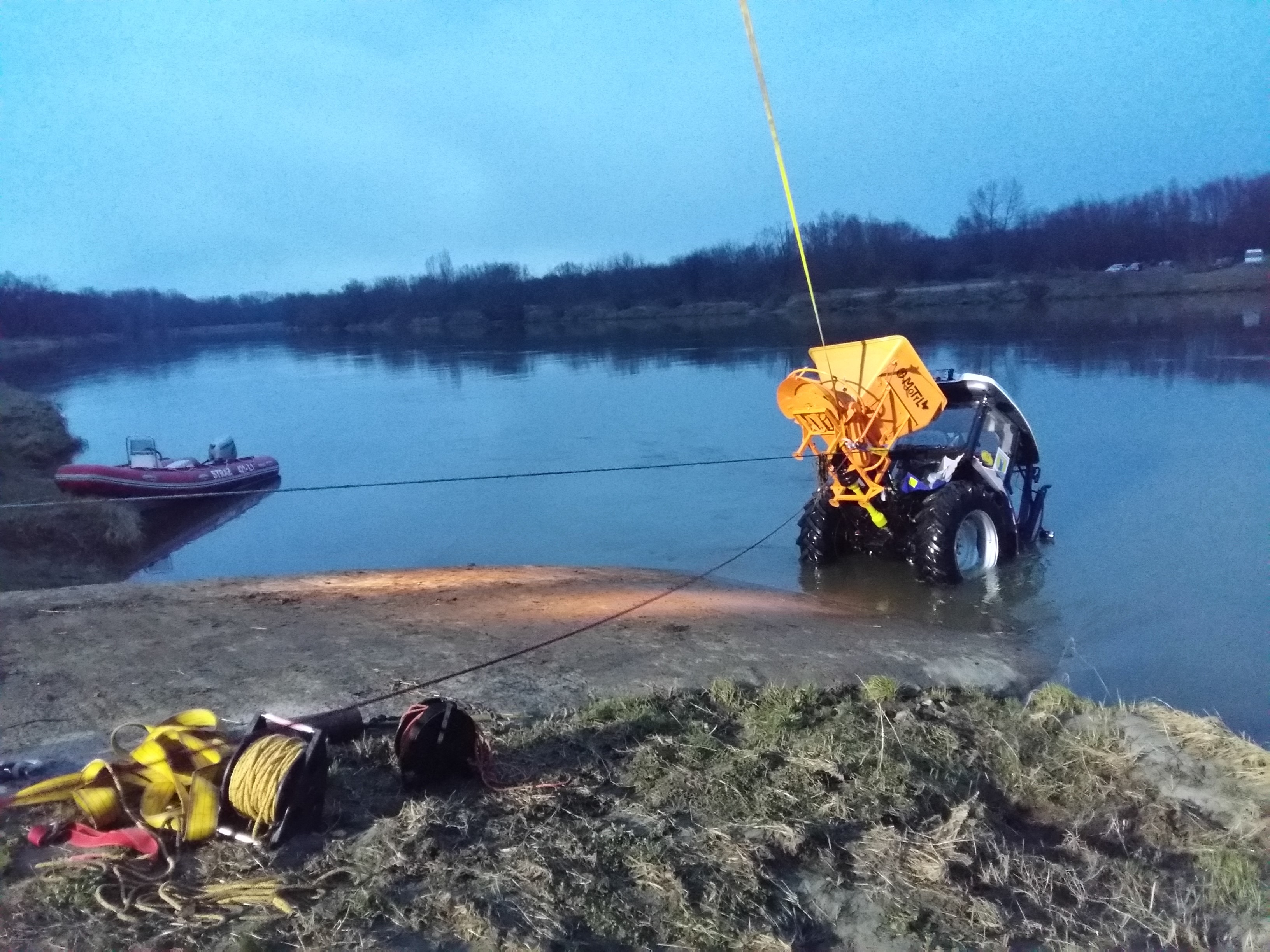 Ciągnik rolniczy wpadł do rzeki Wisła w miejscowości Opatowiec – powiat kazimierski