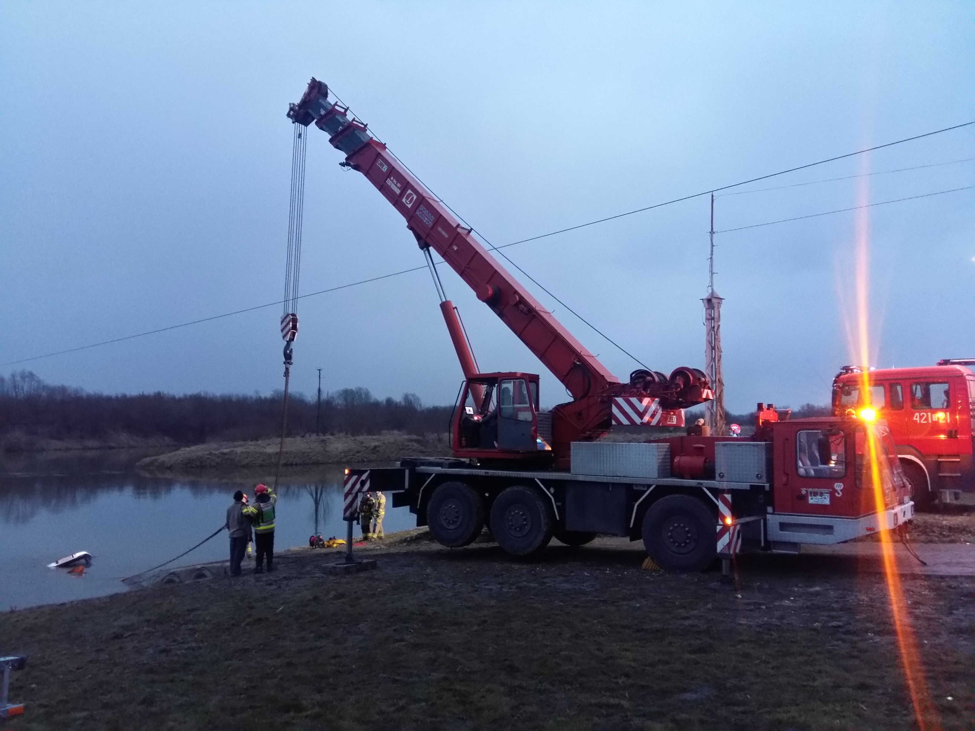 6 marca 2023 r. o godz. 13:02 Dyżurny Stanowiska Kierowania Komendanta Powiatowego Państwowej Straży Pożarnej w Kazimierzy Wielkiej otrzymał zgłoszenie, że w miejscowości Opatowiec w miejscu byłej przeprawy promowej do rzeki wpadł ciągnik rolniczy. Do zdarzenia zadysponowano cztery zastępy z Jednostki Ratowniczo - Gaśniczej z Kazimierzy Wielkiej, zastęp z OSP Opatowiec oraz Specjalistyczną Grupę Ratownictwa Wodno-Nurkowego z Jednostki Ratowniczo - Gaśniczej ze Starachowic. Po przybyciu na miejsce zdarzenia w trakcie rozpoznania stwierdzono, że w rzece Wiśle znajduje się zatopiony ciągnik rolniczy. Ponad powierzchnią wody wystawała tylko niewielka część kabiny. Operatorowi udało się o własnych siłach wydostać z kabiny maszyny nim ta zatonęła. Działania jednostek ochrony przeciwpożarowej polegały na zabezpieczeniu miejsca zdarzenia. Następnie ratownicy ubrani w skafandry wypornościowe zabezpieczyli ciągnik linkami przed całkowitym zatonięciem i przemieszczeniem przez nurt rzeki. Ratownicy ze Specjalistycznej Grupy Ratownictwa Wodno-Nurkowego zamocowali do ciągnika zawiesia pasowe. Dalsze działania polegały na wyciągnięciu maszyny na brzeg przy użyciu dźwigu samojezdnego. Podjęte działania doprowadziły do usunięcia powstałego zagrożenia.